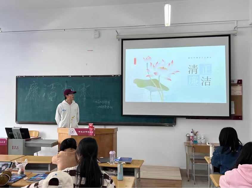 活动中,袁本敏同学首先分享了包拯“不惠位之不尊,而患德之不袁;不耻禄之不伙,而耻智之不博。”的廉洁故事。随后,杨映曼同学分享了杨震“不動,无以成就事业;不廉,难以凝聚人心。”的精神品格,让同学们对廉洁精神有了更深刻的认识与思考。