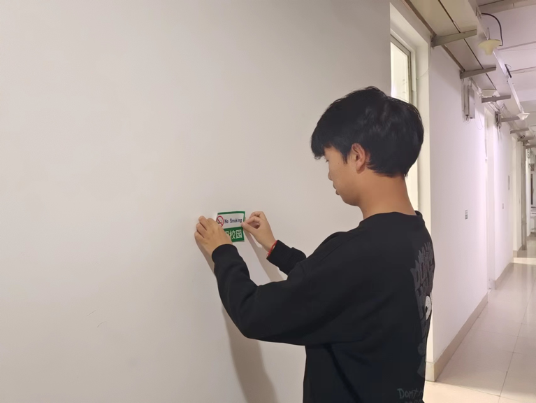 定期排查宿舍安全隐患,提高学生们的消防安全意识,维护宿舍的安全稳定,并通过张贴禁烟控烟标语等形式积极推动建设无烟宿舍,为学生创造良好的居住环境。