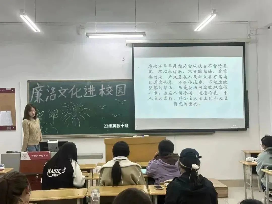 2023级英教十班于2023年10月25日晚7:30在西语楼251举办廉洁教育文化活动——廉洁文化进校园,让清廉种子深植心中”专题分享会。