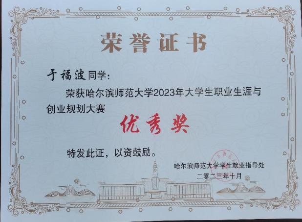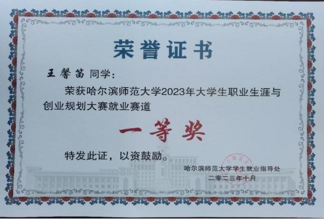 2023年11月1日下午,我校2023年大学生职业生涯与创业规划大赛决赛暨颁奖仪式在科学会堂举办。我院2023级学科教学(英语)专业硕士研究生王馨笛荣获本次大赛一等奖。