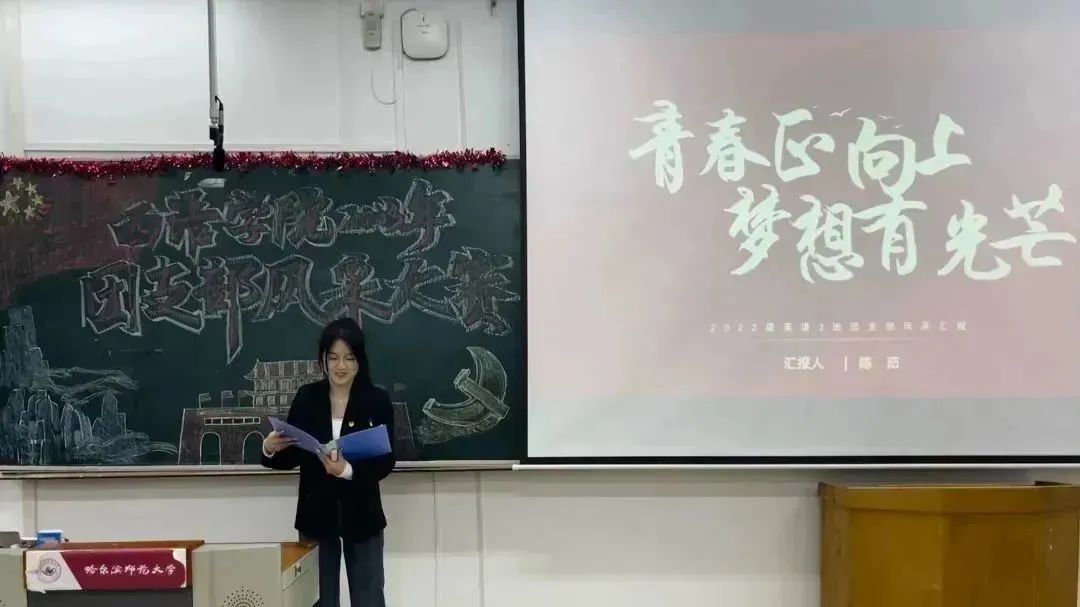 经过初赛的激烈比拼,进入本次决赛的有来自2021级、2022级和2023级共13个团支部参赛。活动伊始,激情澎湃的暖场视频向我们简单地展示了参赛团支部的风采。接着由各班团支书通过PPT展示的形式从团支部发展情况、团支部建设成果、团支部所获荣誉等多角度、多方面地进行展示,全面介绍了所属团支部的具体情况,展现出青春昂扬的精神面貌和积极进取的支部风采。