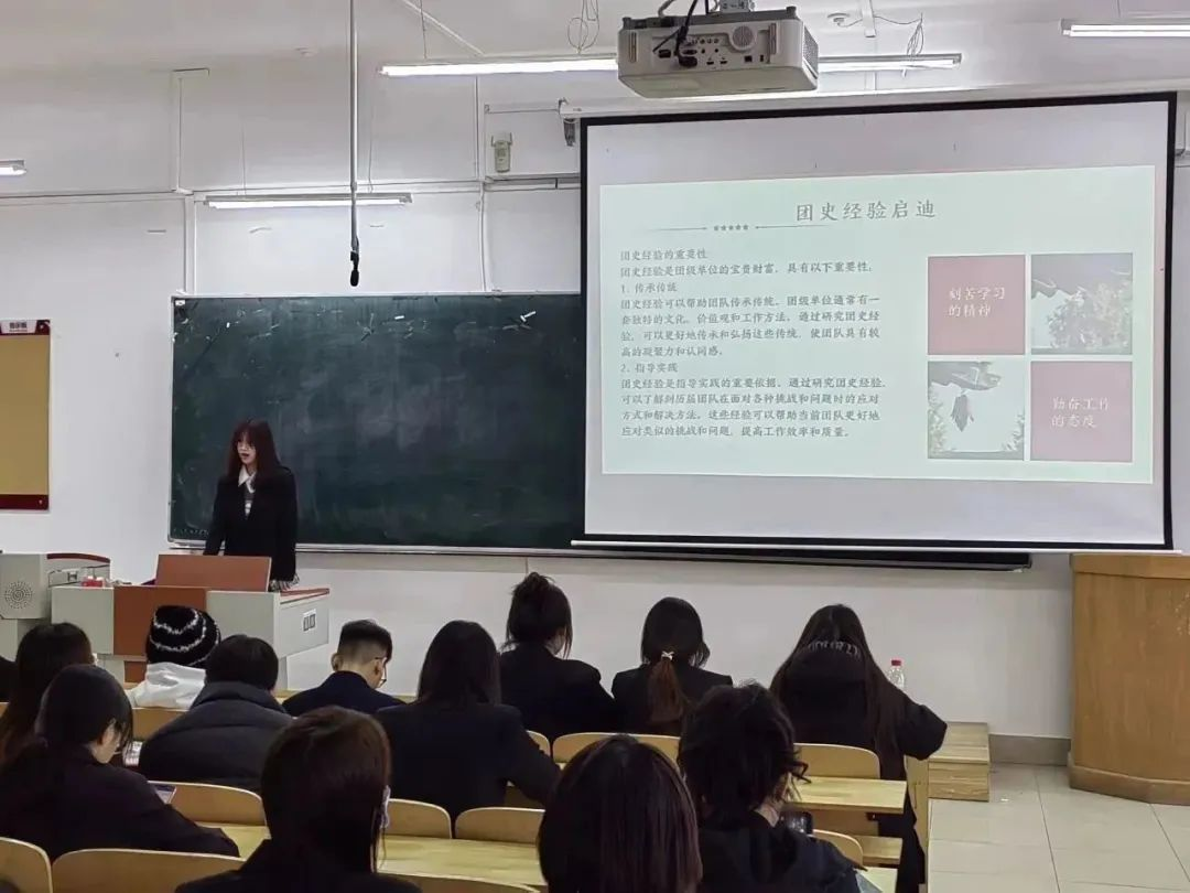 在第四期"挺膺担当"主题学习活动中,主讲人温钟懿、孙梦琳借用习总书记的新年贺词“中国发展要靠广大青年挺膺担当。年轻充满朝气,青春孕育希望”,鼓舞我们青年一代高举信念火炬、厚植家国情怀、保持奋斗姿态,让青春为时代添彩增辉。接着指出何为"挺膺担当",即要勇于承担责任、担当使命。又深入分析了"挺膺担当"该如何培养与实践。坚定信仰,在传承红色血脉中成长,学习和践行社会主义核心价值观。还应真抓实干,聚焦当下工作与学习,在点滴积累中增长本领、磨砺心性。