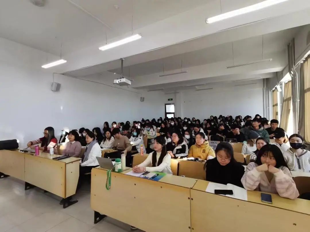 党委王羽书记、应用英语系李雅波主任、2021级应用英语系辅导员杨晓明老师、实习指导教师代表丁昳玲老师、2020级翻译、商务英语专业的全体学生和2021级学生代表出席了本次会议,会议由孟繁婷老师主持。