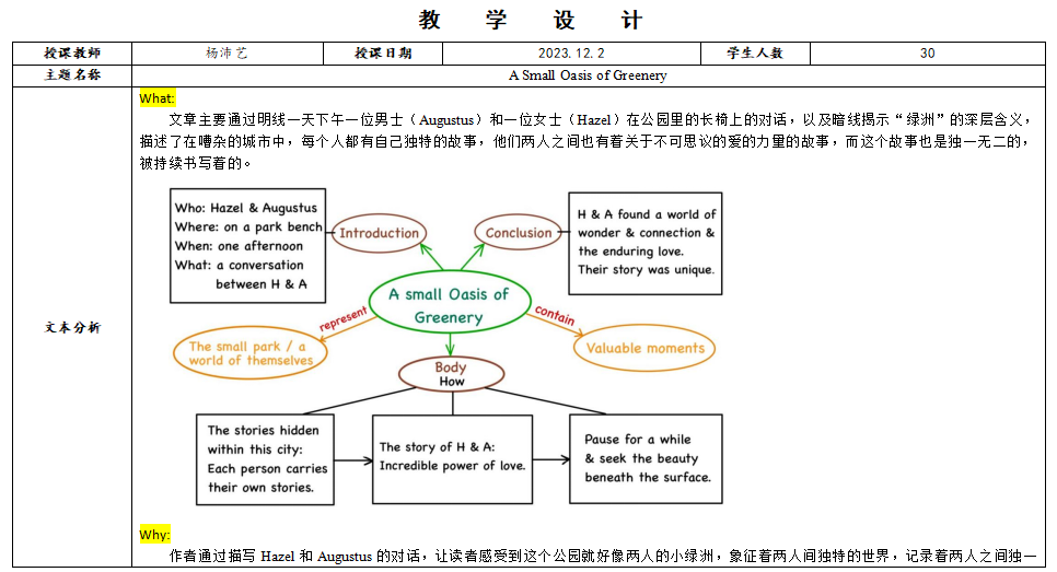 两位选手在很短的时间内,利用平时所学较高质量地完成文本分析、学情分析、教学目标设定、完整的教学过程以及PPT的制作。在白丹和张洋老师的指导下,学生不断改进自己的教学设计,反复进行试讲完善,从设计思路到讲授细节学生都尽量做到更好。