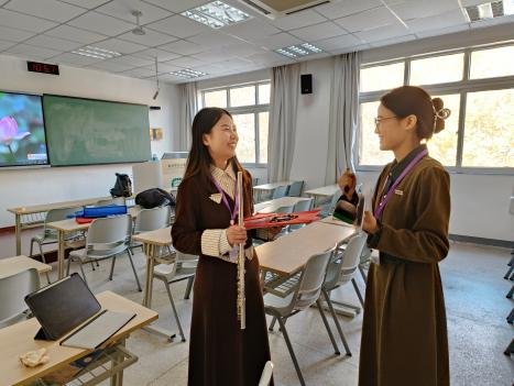 (杨沛艺表演长笛、李玉涵表演剪纸)