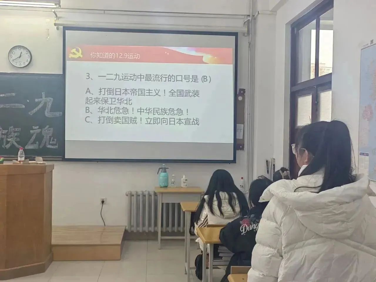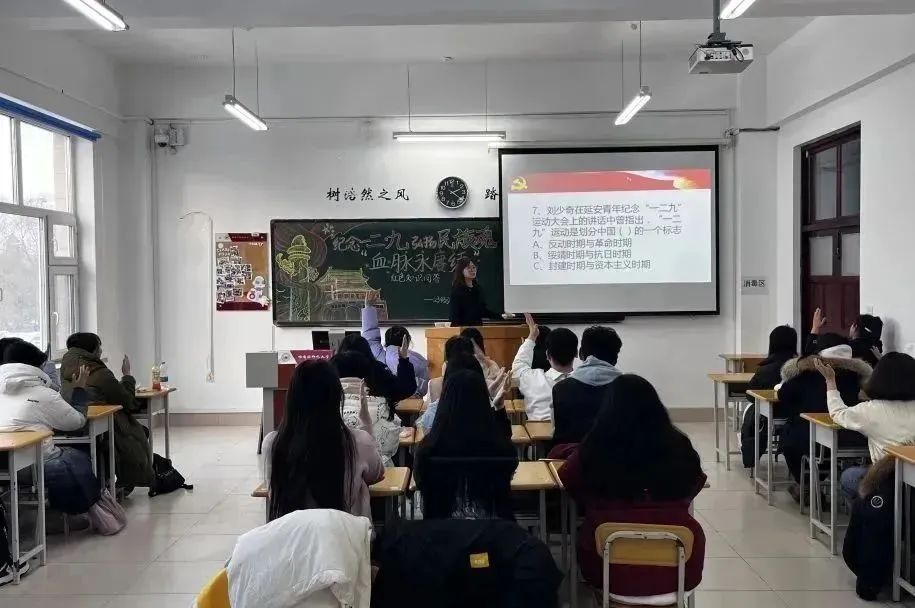 接着,为了让同学们进一步了解到一二·九运动的内涵以及考察同学们对此运动的理解程度,各班团支书组织知识竞答的活动。团支书对于每个问题选项也都进行了详尽的解释,有针对性地扩充了西语学子对于一二·九运动的知识面,帮助同学们普及历史知识。知识问答有效提高了团员青年的参与热情,有利于唤起同学们对民主、自由、爱国等核心价值观的思考,并将一二·九运动的精神传承下去。
