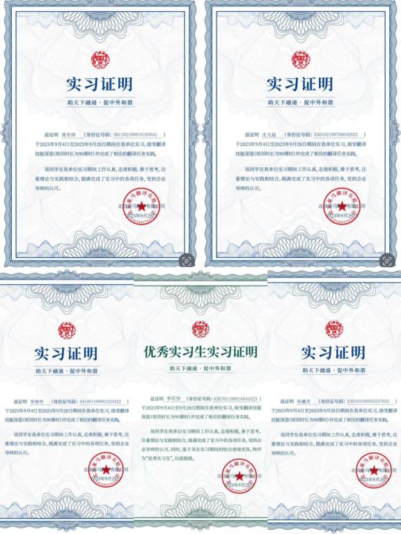 上海策马翻译有限公司实习基地导师Mason老师和Linda老师为同学们制定了包括字幕翻译、个人求职简历制作、翻译案例精析、本地化以及法律翻译等在内的一系列在线课程,从翻译的现实意义、未来发展趋势以及对个人职业生涯的影响三个方面进行了系统的讲解。除了基于同学们自身发展和翻译职业需求制定的线上课程之外,上海策马翻译有限公司还定期进行直播讲座,为同学们带来语言服务行业的最新资讯、翻译工作的基本流程、不同类型计算机辅助翻译工具的操作以及翻译实践讲解和翻译经验分享。在校内导师李智老师和实习基地导师的共同指导下,在历时四个月的翻译实习实践中,2022级每位MTI学生都参加了中国社会科学院与柬埔寨皇家科学院共同主办的第三届中柬智库高端论坛、首届中国(黑龙江)国际绿色食品和全国大豆产业博览会等翻译项目,均完成了近万字的中英翻译实践任务,内容涉及学术论文、政府文件、金融报告和医学文献等多方面题材。iqqtv
