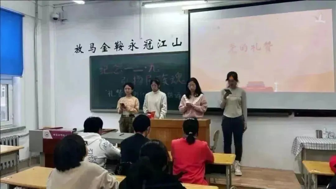 活动伊始,各班团支书介绍了一二·九运动的过程和意义,旨在强化同学们的责任感和使命感。随后,各班同学进行了激情澎湃的诗朗诵,展现青春风采。