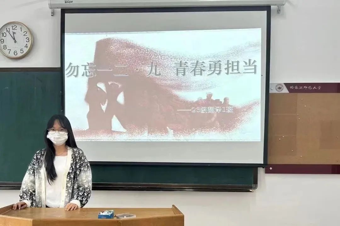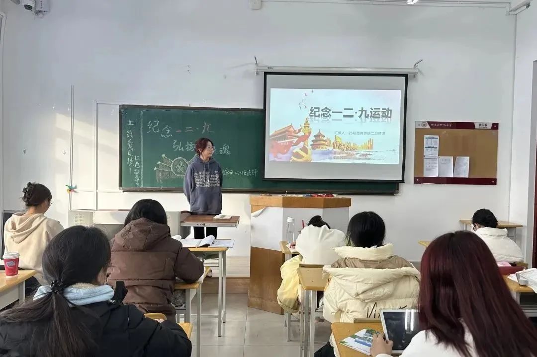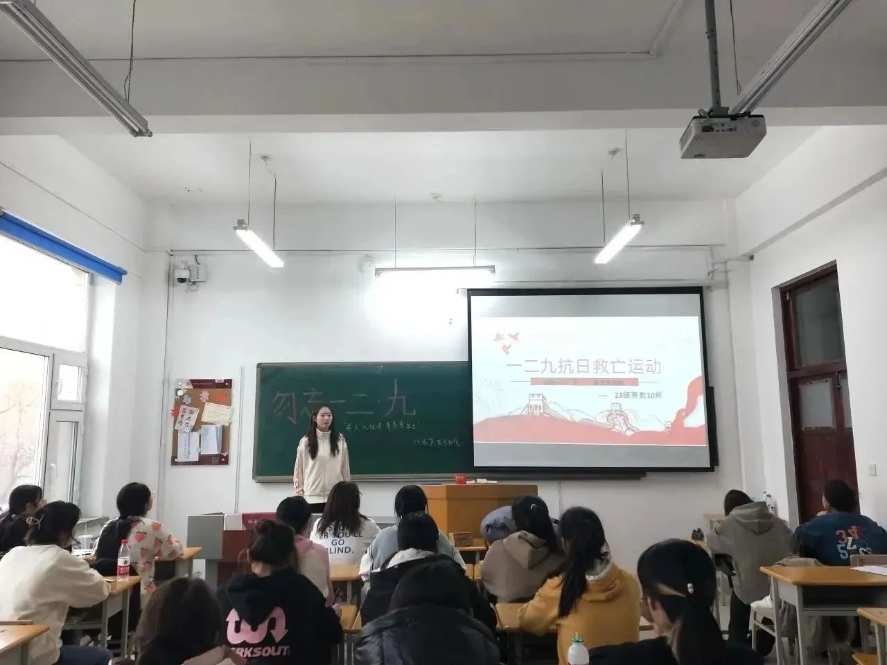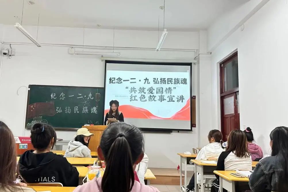 活动伊始,各班团支书介绍了一二·九运动的过程和意义,激发同学们对一二·九运动红色故事的热情。随后,团支书通过讲述革命先烈的故事,带领同学们走进那段峥嵘岁月。团支书讲述董毓华、白乙化等英雄的红色故事,让同学们了解到一二·九运动中的英雄形象。他们来自不同地区,但共同的信仰和使命感使他们聚集在一起,在共产党的旗帜下团结一心,参与了一二·九运动,为抗日事业献出了生命。