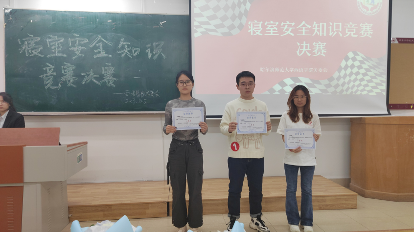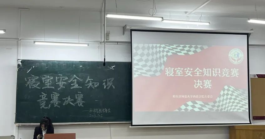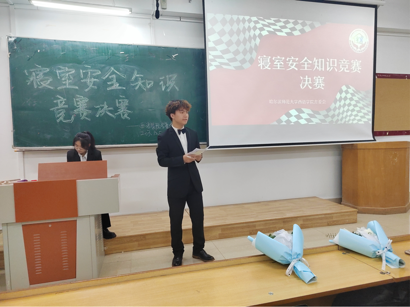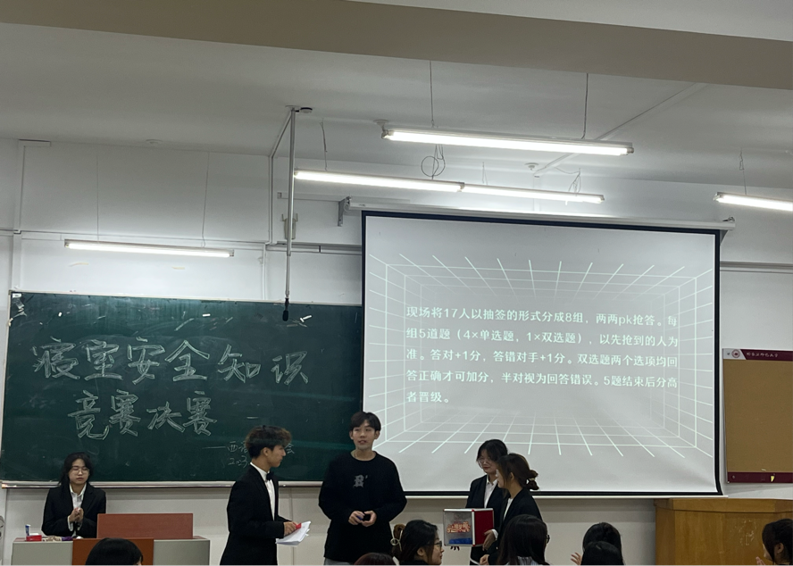 于2023年12月5日,在西语楼451教室如期举办寝室安全知识竞赛决赛,并取得圆满成功。本次大赛由舍委会成员葛天琛主持,并为切实保障比赛公平公正公开,主办方特邀学生会主席黄珊、团委学生兼职副书记杨竺溪以及舍委主任隋佳成共同担任本场决赛评委。