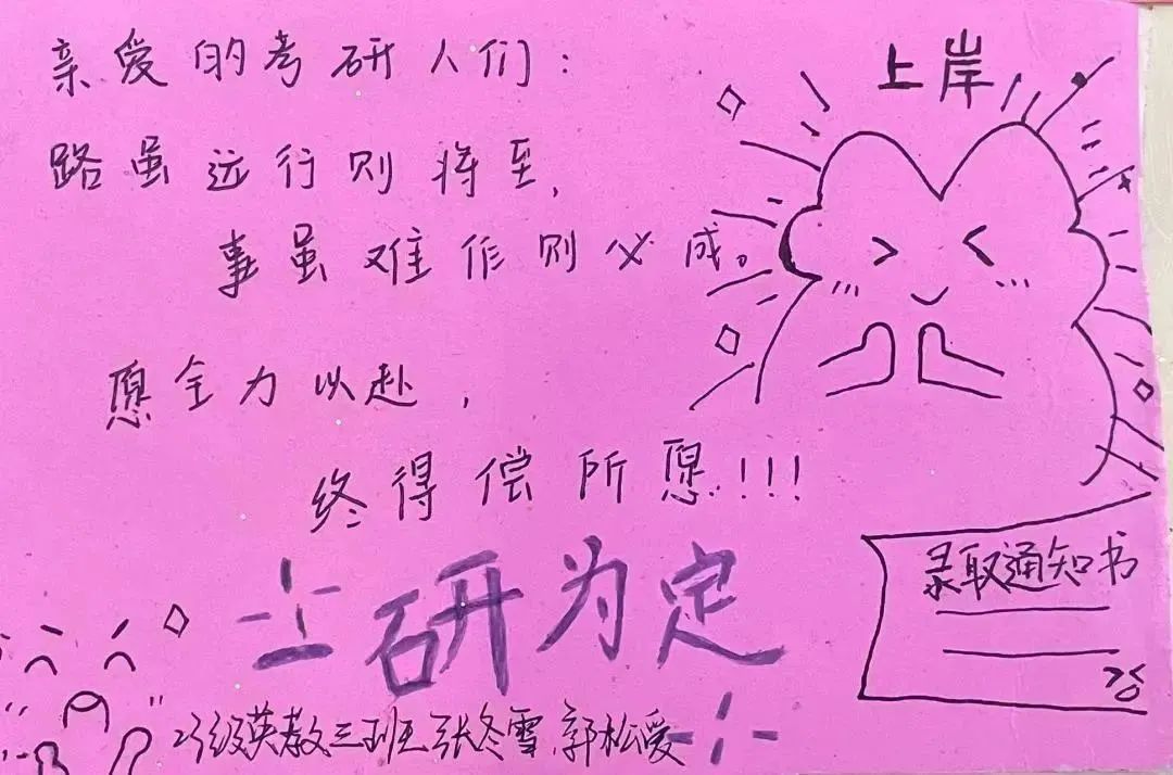 全体师生衷心祝愿每一位考研学子都能取得优异的成绩,实现自己的梦想!“学如逆水行舟”,希望各位考研学子铭记“一研为定”的初心,“研”心追梦,“研”志如铁,百尺竿头,更进一步!