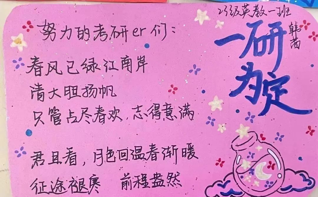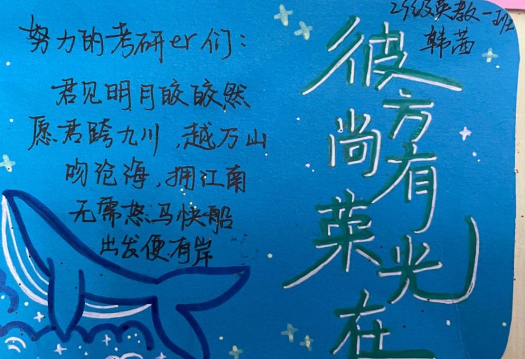“才思涌动行天马,文意逐流促玉章。”展板上的点点希望,最终汇成一个愿望:理想的风吹进现实,所有的努力终有想要的结果。愿你的考研之路如同盛夏的阳光,明媚而不刺眼;愿你的努力化作丰硕的果实,为你的未来铺满希望;愿你这一路总有新的故事值得期待!关关难过关关过,前路漫漫亦灿灿。