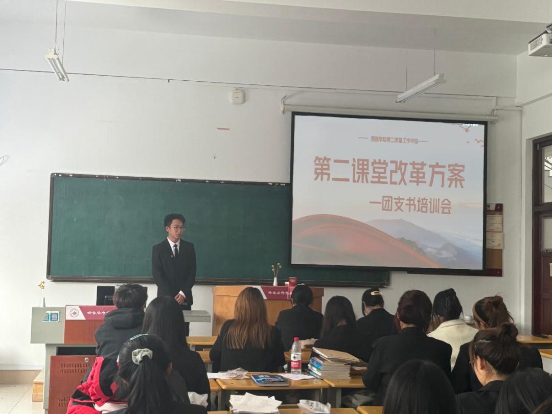 开展第二课堂改革方案落实培训会,对各班团支书进行集中培训。