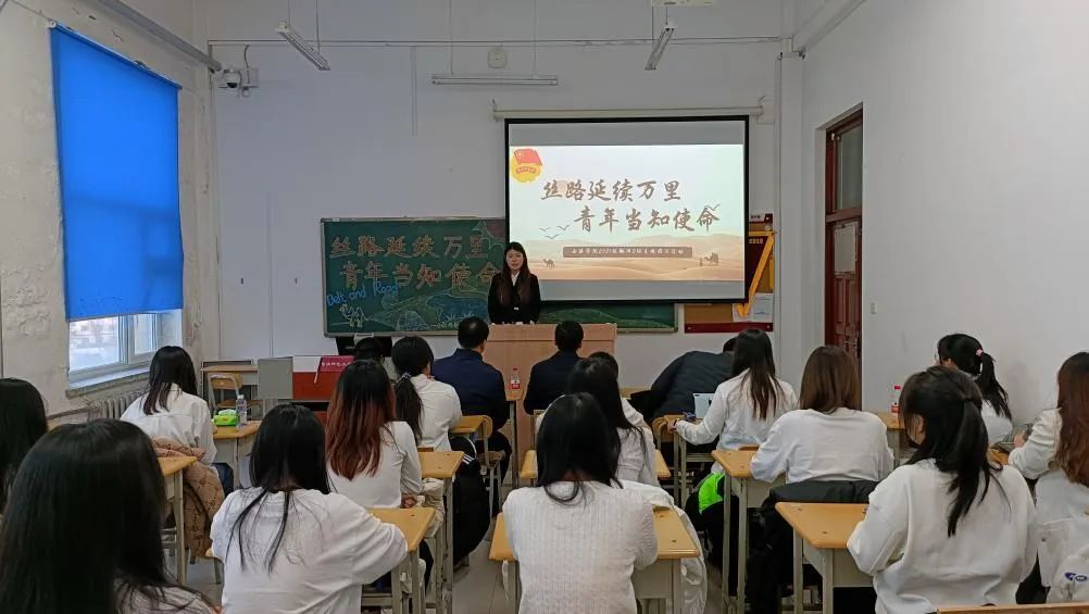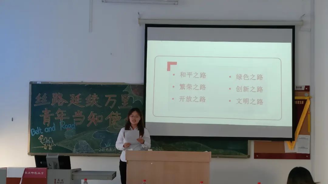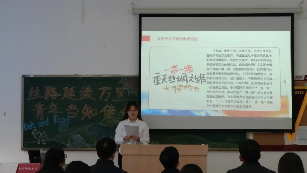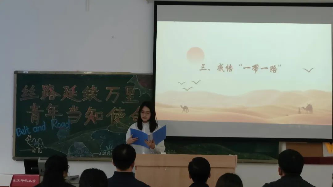 第二部分是“认识‘一带一路’”。同学们通过PPT展示,介绍了“一带一路”倡议的具体内容,讲解了其对沿线国家的经济合作、政治交流、文化传播、知识教育等方面的重大成就。