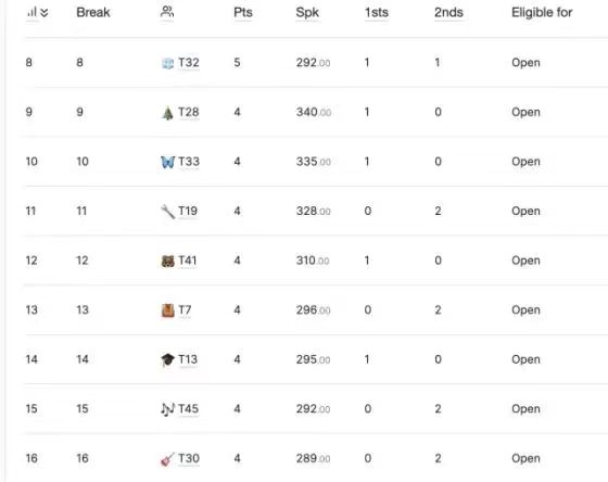 48支队伍经过三天激烈角逐,根据队伍积分和辩手得分,产生了16强队伍,名单如下: