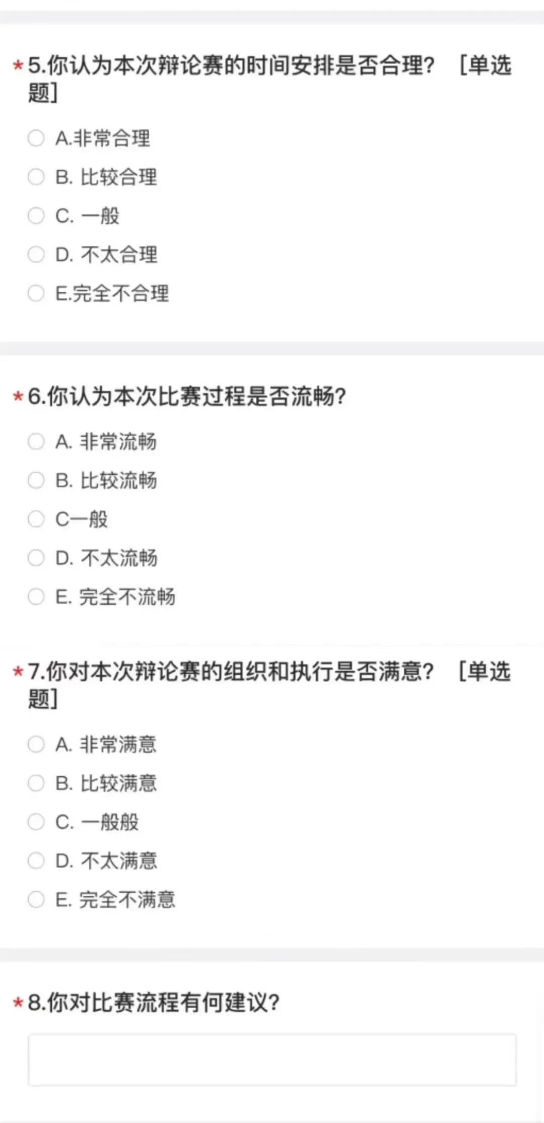 赛后,我们还设计了调查问卷,收集各方意见,以便日后提高各方的参赛体验。