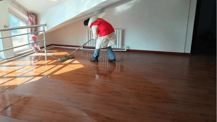 图为志愿者们正在打扫卫生