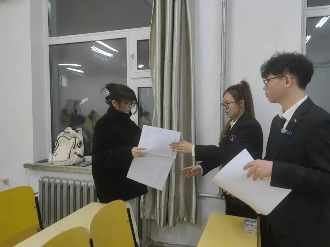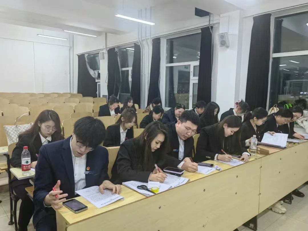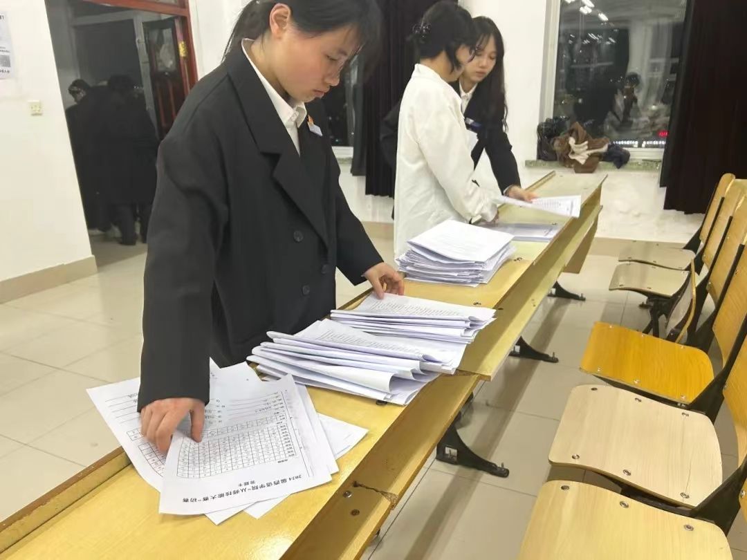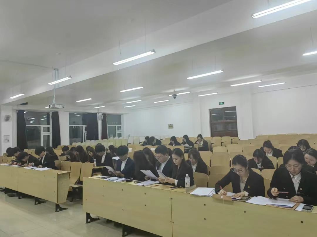 比赛于20:00结束,监考人员准时收回试卷和答题卡并核对份数准确无误后将考生信息匿名化密封保存。随后,工作人员到场进行清扫,确保教室卫生干净整洁并清点考场遗留物品,做好后续工作。最后,所有工作人员在西语楼451教室统一完成试卷的批改工作。本次阅卷秉承着公平公正的原则,在第一次判卷后随机打乱并进行第二次复批,由判卷组完成比赛成绩统计,根据报名比例以及成绩排名取师范类33名、非师范类16名同学进入决赛,并于3月18日统一为决赛选手发放决赛邀请函。