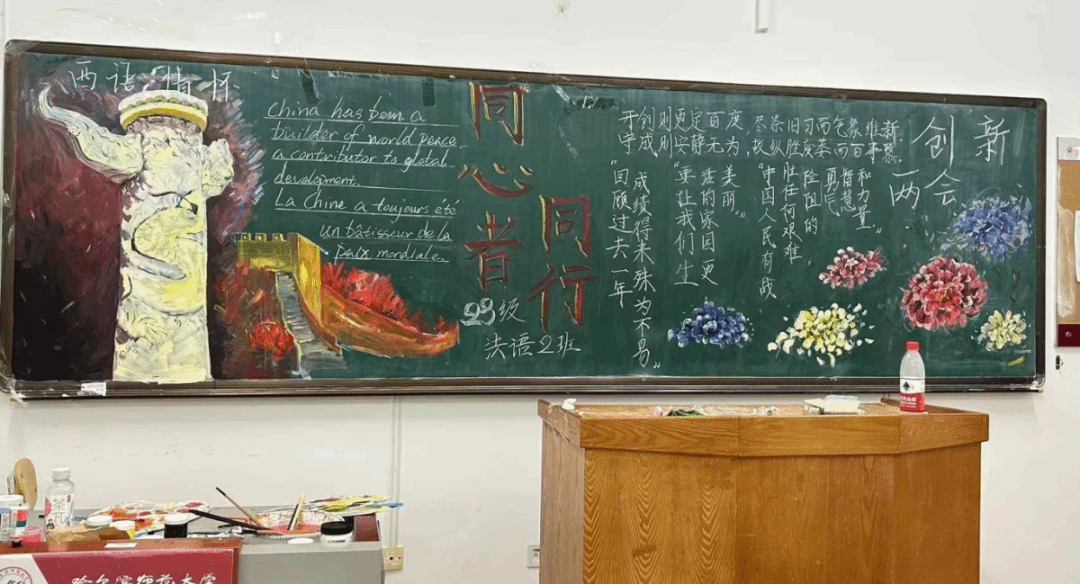 3月15日至3月21日,各班级积极参与,发挥创意,同学们以线条为语言,以色彩为情感,围绕“同心,同行”主题,结合班级特色,设计出一幅幅积极向上、内容丰富的板报作品。