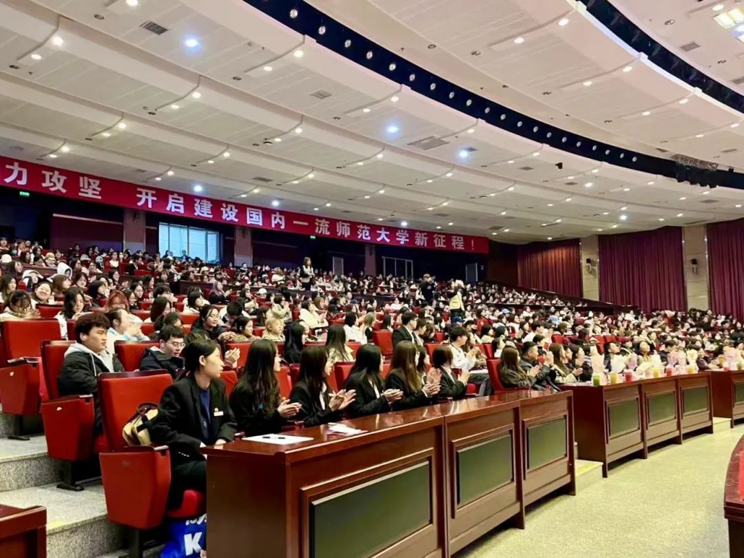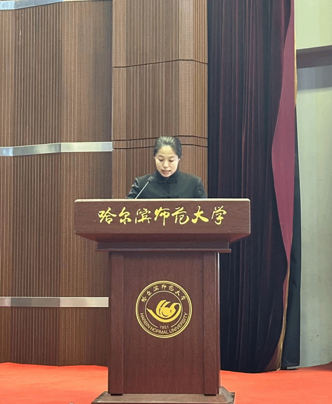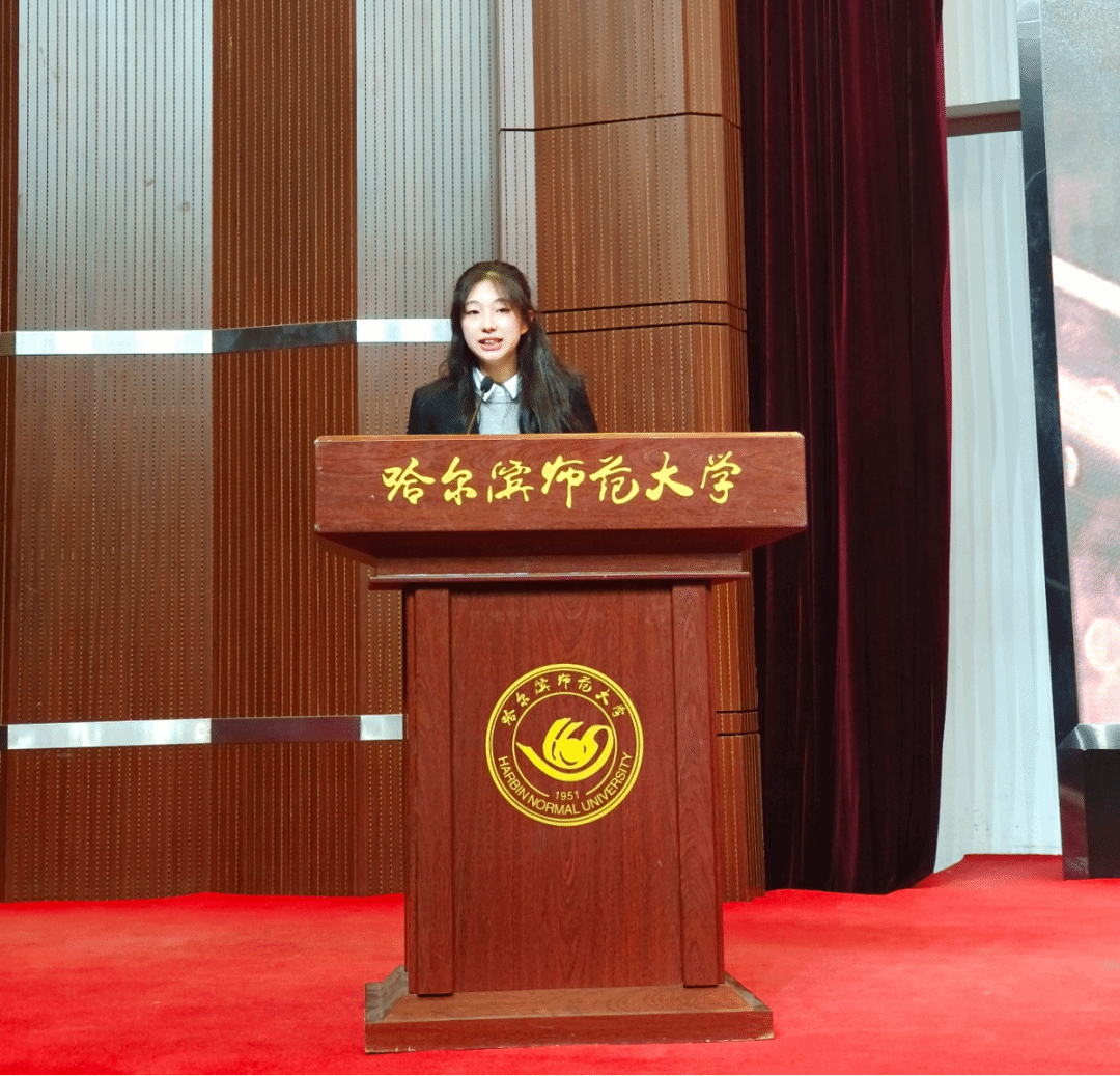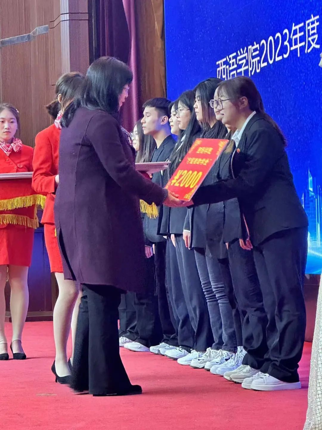 接下来,获奖学生代表英语教育系2021级八班高正桃上台发言。她首先感谢了各项奖学金设立者,是他们的远见卓识和慷慨解囊激励了更多学子追求卓越、贡献社会,而后表示这份荣誉不仅是对获奖同学过去努力的肯定,更是他们未来奋斗的动力。高正桃同学的发言不仅展示了她的才华和抱负,也给了在场的其他同学深刻的启示和激励。她希望西语学子在今后的学习和生活中,都能继续保持谦虚、勤奋、进取的态度,不断提升自己的能力和素质,不断进取,为学校争光添彩。