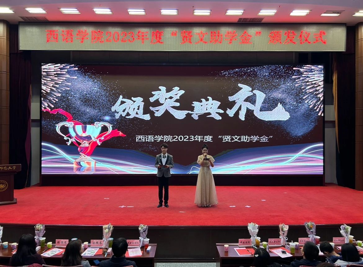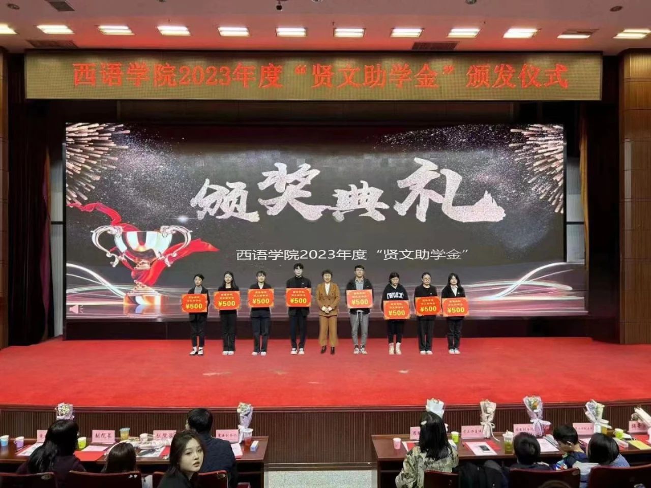 随后进行“贤文助学金”颁发仪式。由英语教育系主任郭颖为获奖同学颁奖。
