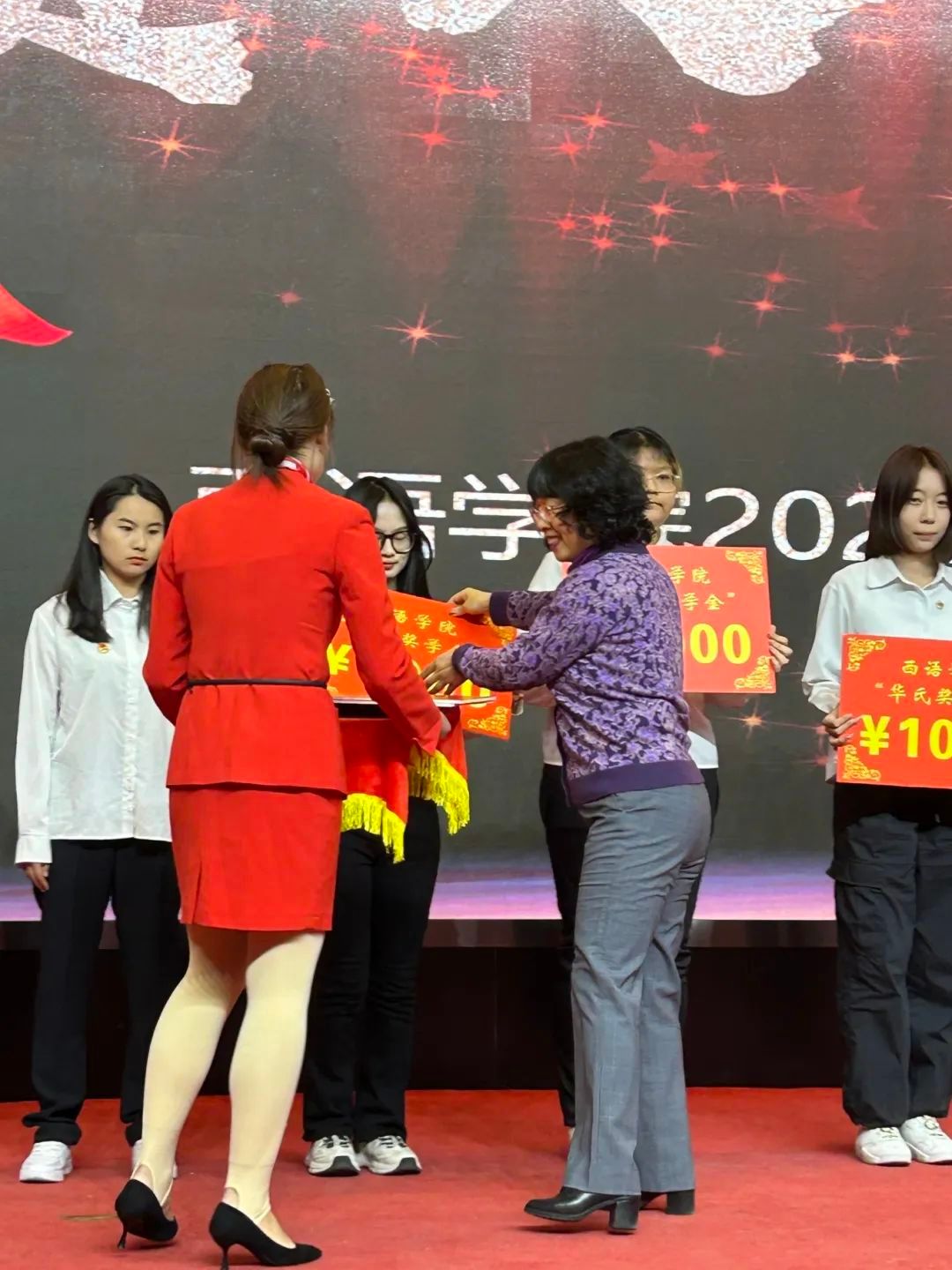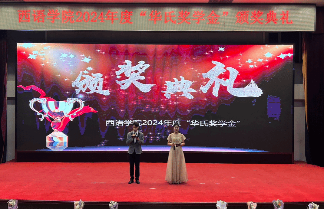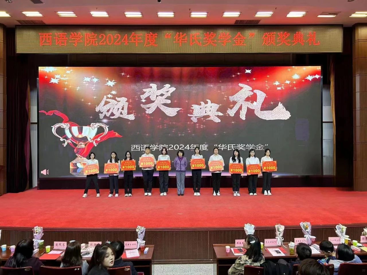 接下来进行“华氏奖学金”颁发仪式。由应用英语系主任李雅波为获奖同学颁奖。