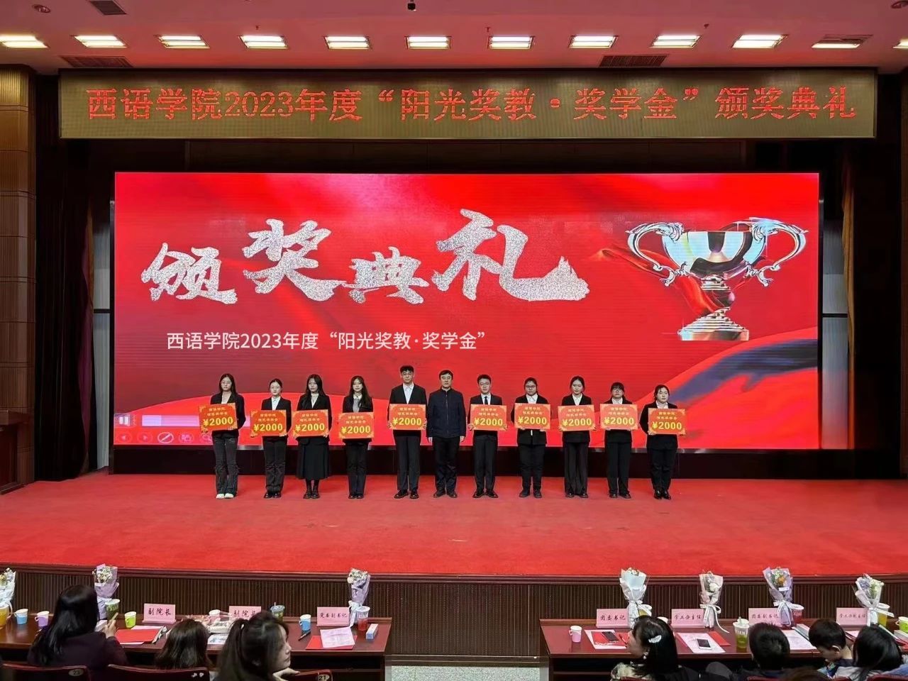 最后进行“阳光奖教·奖学金”颁发仪式。由党委副书记吕会庆为获奖学生颁奖。
