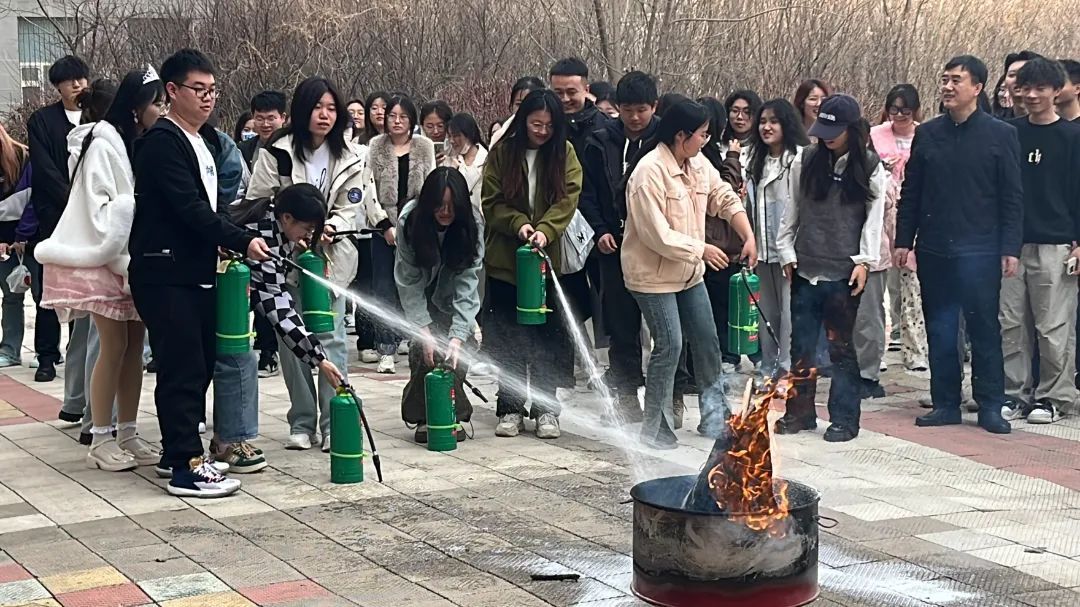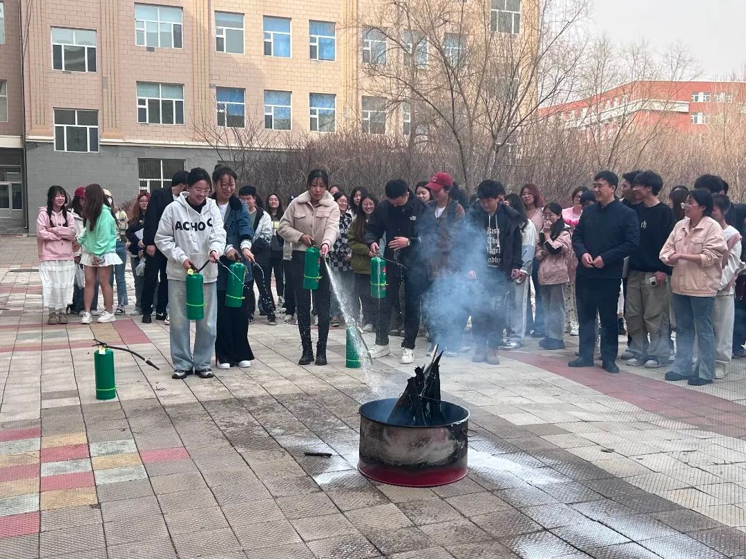 首先,由保卫处干警李卓阳为师生们讲授安全教育课,介绍常见的消防标识和灭火器、消火栓等消防器材的使用方法。并通过典型案例警示学生们不要在寝室使用大功率电器和随意摆放易燃物品,传授自救知识。随后,学生们在保卫处干警和学院老师的引导下,进行了消防应急疏散演练。最后,在西语楼后广场开展了扑灭初期火情实训,在保卫处干警讲解和演示灭火器的使用方法后,学院老师和学生们进行了使用灭火器扑灭初期火灾的演练,我院师生也确切地得到了宝贵的实践经验。