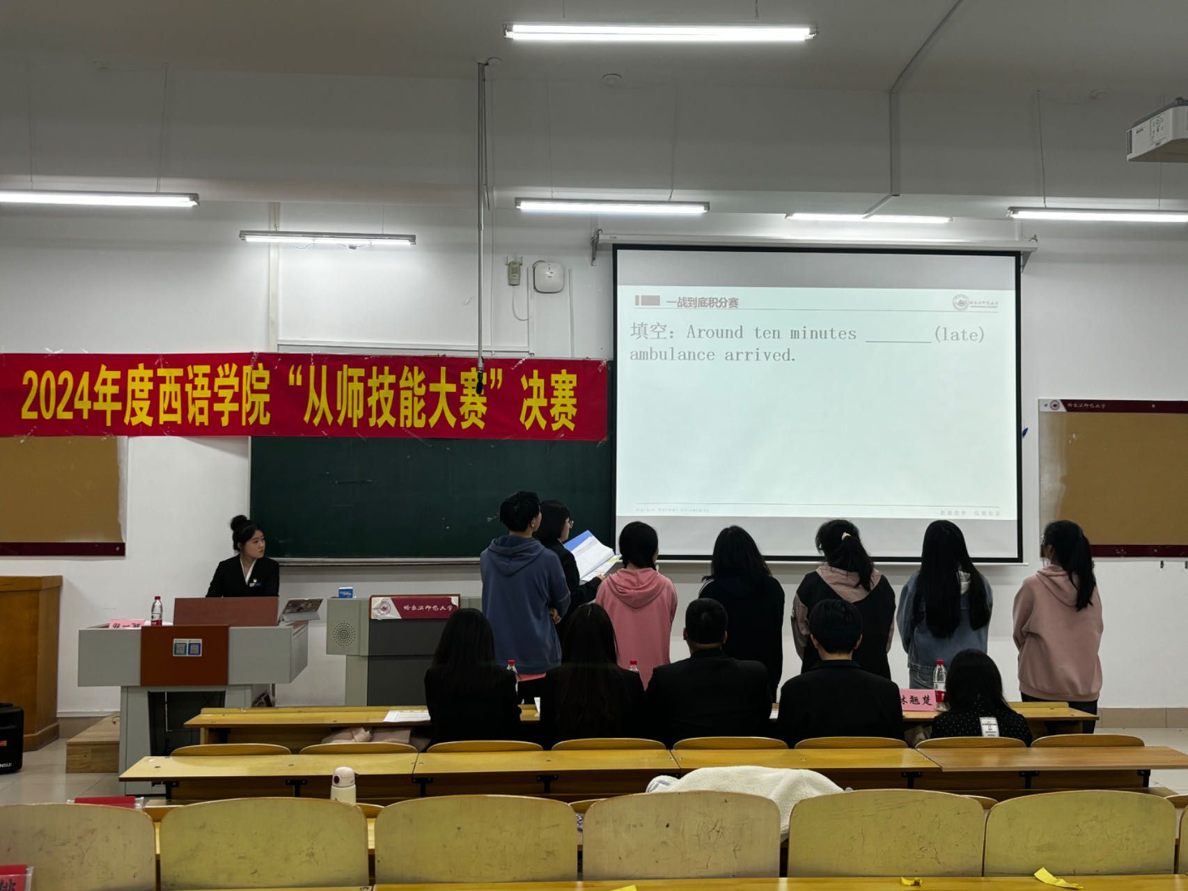 比赛于19:15正式开始,本次比赛分别在451、551教室设置非师范组赛场和师范组赛场。出席本次决赛的嘉宾有:学生会主席团成员黄姗、杜宪忠、陈艺丹、学习部部长刘语轩;新闻网络中心主席宋佳瑞;团委兼职副书记杨竺溪;学生公寓管理与服务中心主任隋佳成、秘书部部长邵天赐廷;心理健康中心主席邢彤;青年志愿者协会主席李明欣;创新创业协会主席林翘楚。