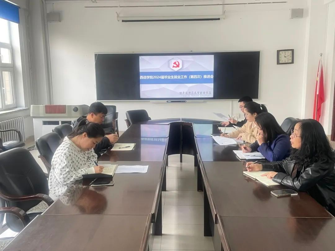 2024届毕业生高质量就业,确保就业工作稳步开展、有序推进,为毕业生提供更好的就业指导服务,学院于2024年4月26日下午在西语楼211会议室召开2024届毕业生就业工作第四次推进会,学院党委书记王羽、党委副书记吕会庆,副处级辅导员杨晓明、毕业年级辅导员参会。