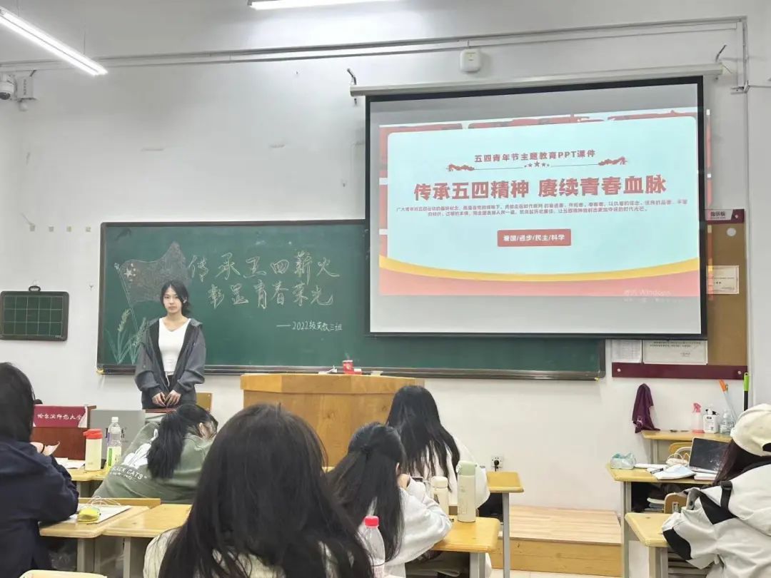 各团支部深入贯彻习近平新时代中国特色社会主义思想,深入挖掘和传承学院历史文化,弘扬五四精神,引导同学们树立正确的历史观、文化观和价值观。五四运动找到了中华民族实现伟大复兴的指导思想,推动了追求真理、追求进步的伟大觉醒,激发了中国社会进步和马克思主义在中国的传播。五四运动的指导思想具有深远的历史意义和现实意义。因此,加强对五四运动思想精神的宣传教育,对于新时代新青年新社会的发展具有重要意义。