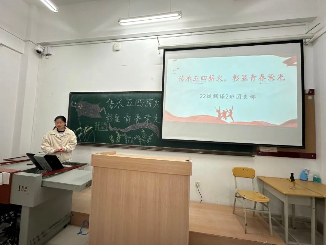 活动伊始,团支书带领班级同学观看影片,深入了解学校历史,了解校史所蕴含的五四精神。观影结束后让班级同学分享见解与感悟,引导同学们体会青年对于社会的奉献作用。接着团支书通过学习座谈、交流讨论、征文演讲、诗歌朗诵、故事分享、文艺演出等多元化形式继续向同学们介绍优秀校史及五四精神。最后,同学自行总结本次团课内容和所领悟到的精神内涵并提出自己日后将如何约束和改正自己。通过本次团课,西语学子学校史、知校训、强信念、践使命,深刻贯彻iqqtv