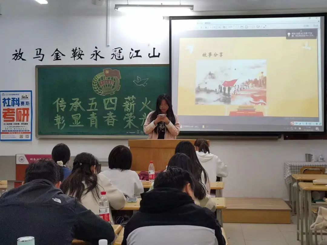 最后,进行爱国故事分享环节。五四运动孕育了“五四精神”,通过分享关于五四运动的故事,同学们更加深刻地了解了五四运动的背景、经过和结果,从而加深了对中国近现代史的理解。同学们在这期间展现了强烈的求知欲和创新精神,并通过共同学习和讨论,增强了同学们之间的合作精神和凝聚力。