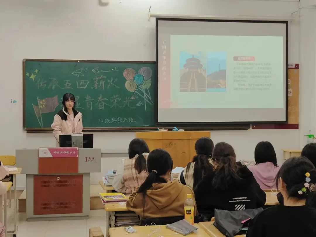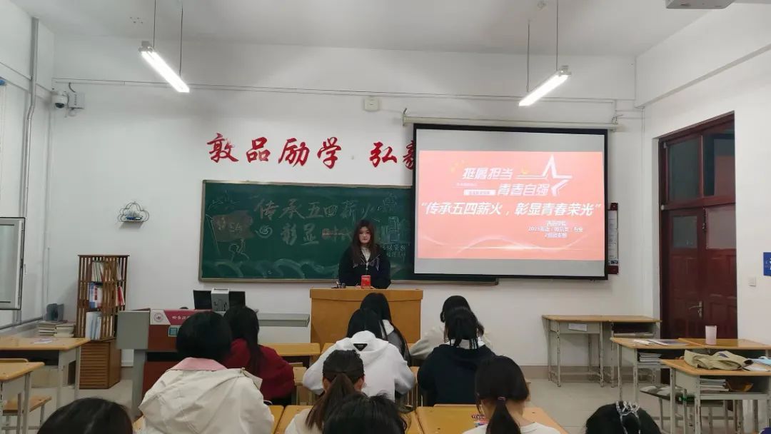 接着,各团支部开展“传承五四薪火,彰显青春荣光” 主题演讲,激发了同学们的奋斗精神。在这个舞台上,同学们慷慨激昂地抒发自己内心深处的声音,用真挚的情感和生动的语言讲出他们对青春的理对责任的担当,以及对梦想的执着追求。他们的演讲如同一首首慷慨的乐章,唤起每个人心中对未来的无限憧憬,展现了新时代青年的担当和奋斗精神。