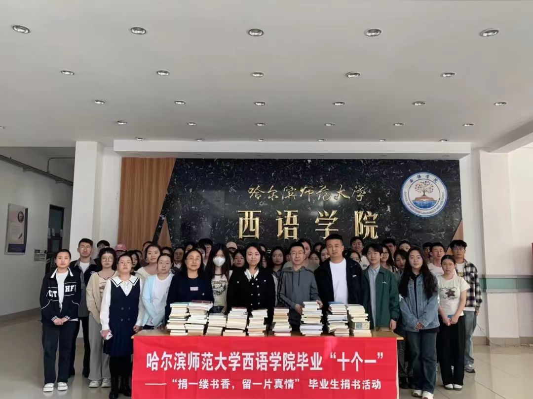 于2024年5月9日13:30在西语楼一楼大厅组织开展了毕业生图书捐赠活动,倡导毕业生通过捐赠闲置书籍表达对母校及学弟学妹的关心和支持,将涓涓细流般的爱心汇聚成知识的海洋,让智慧得以共享,让陪伴得以留长。学院副处级辅导员杨晓明、毕业年级辅导员蒋雨材、马小晶、辅导员魏一扬以及毕业生代表参加了此次活动。