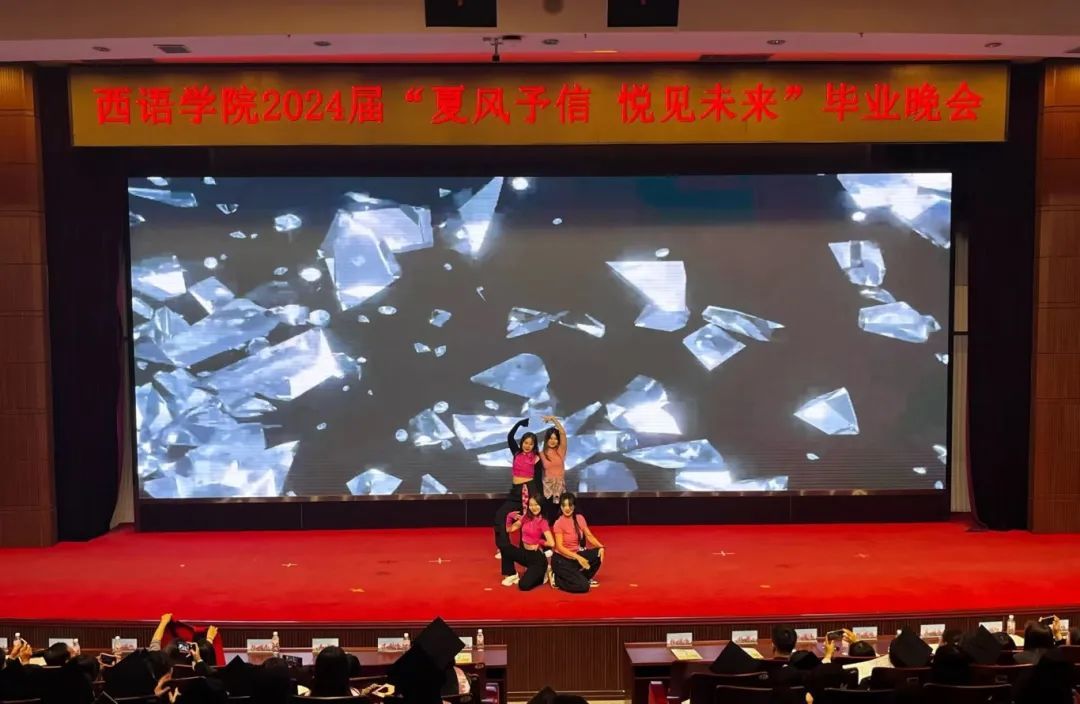 舞蹈《Diamond》,歌曲《无名的人》,《伤心的人别听慢歌》,《想见你》和少数民族同学、小语种学生为我们带来的的舞蹈串烧,带领毕业晚会走向高潮。