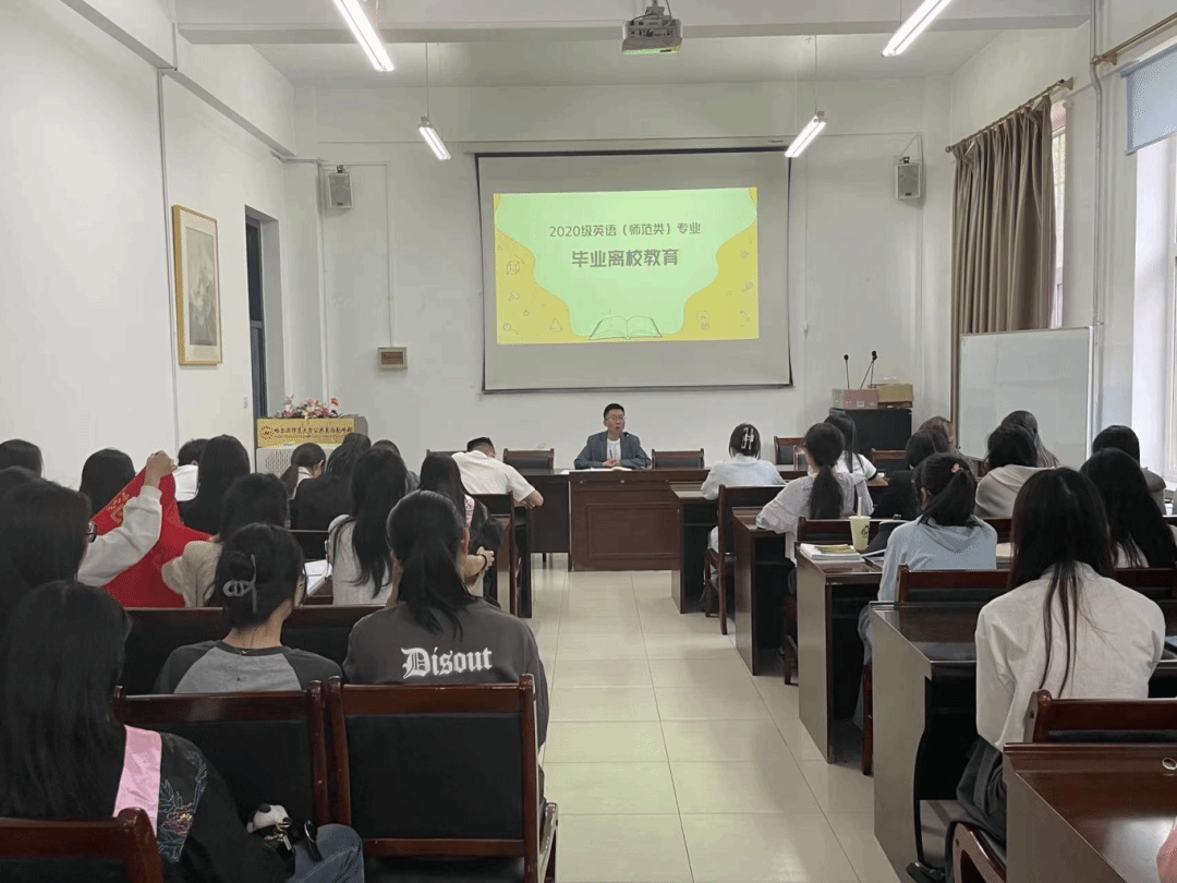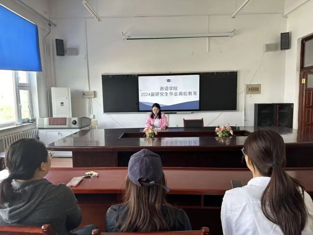 2024届毕业生辅导员蒋雨材、马小晶和张欣桐,分别在西语楼组织召开所带专业离校教育大会,学院全体2024届毕业生参加本次大会。