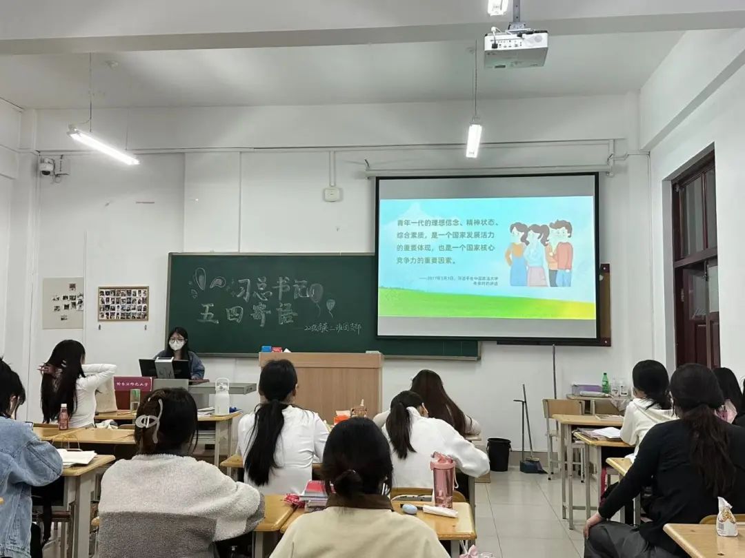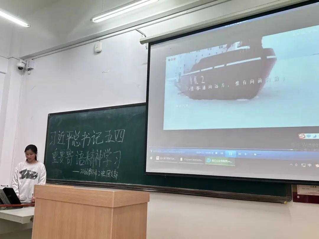 活动伊始,各班团支书带领同学们回顾了习近平总书记历年在五四青年节期间的重要寄语,通过话语展示、视频资料等形式,大家深刻感受到了习近平总书记对青年一代的殷切期望和关怀。其中,习近平总书记强调最多的就是青年的使命和责任,他鼓励青年要勇于担当、积极投身国家建设和社会进步事业中去。