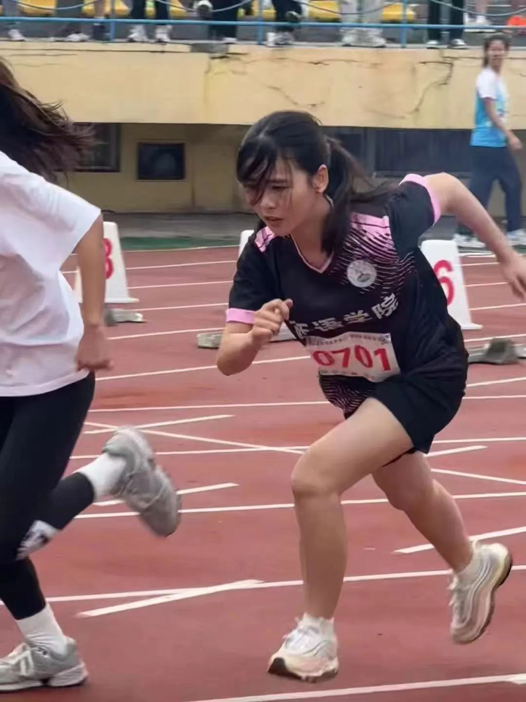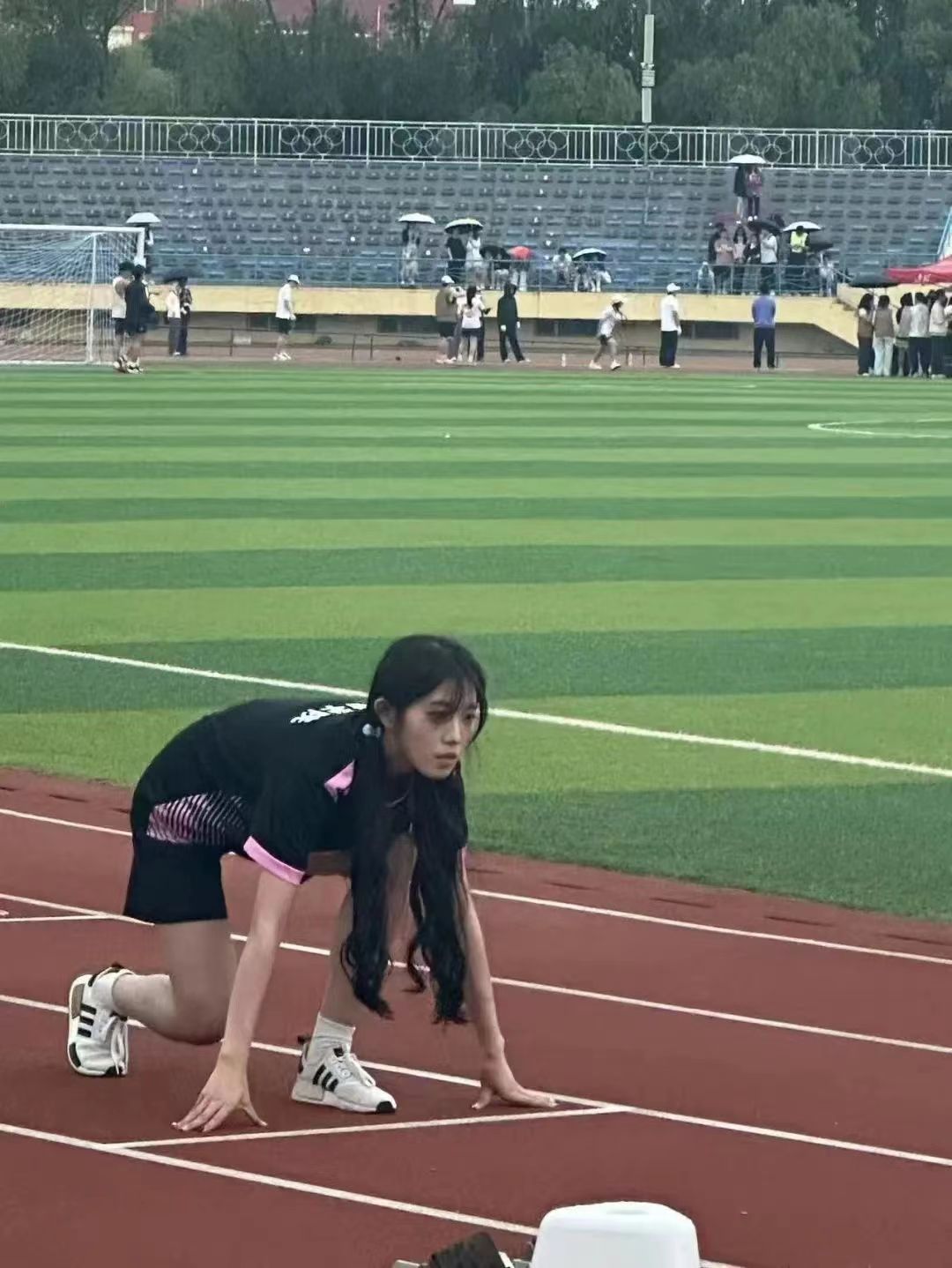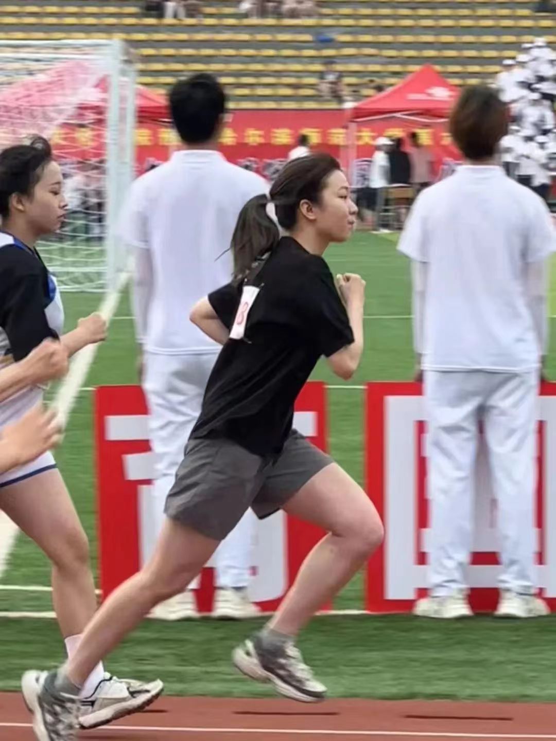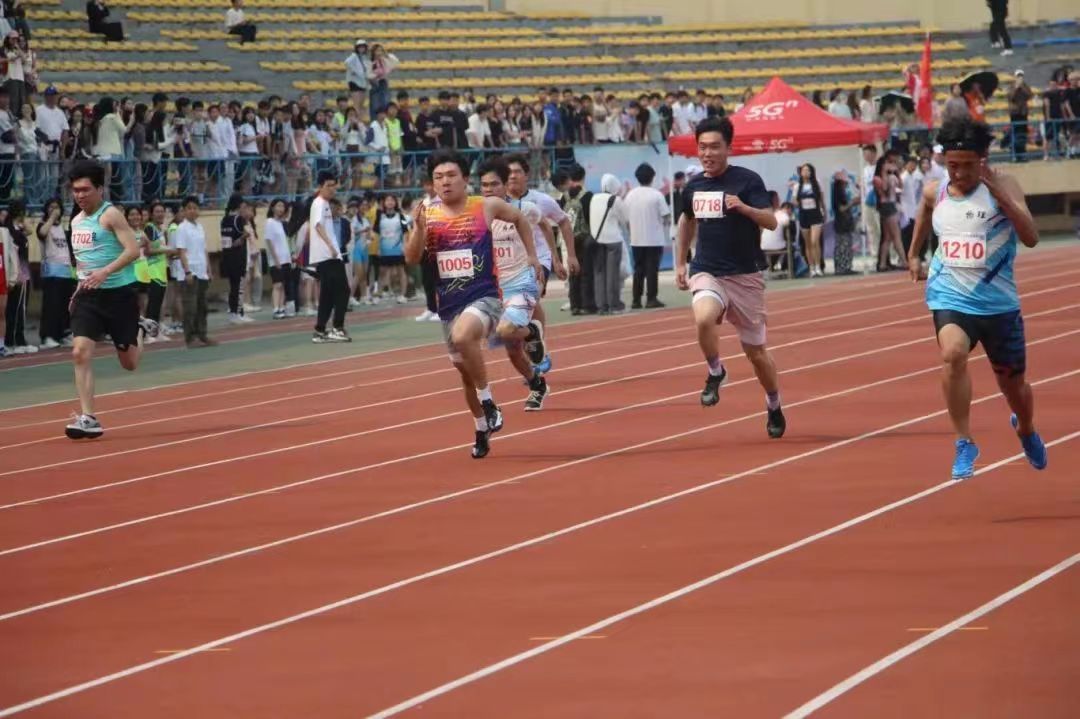 随着发令枪响,运动会各项比赛也紧锣密鼓地开始了,体育场顿时沸腾起来。西语健儿们在体育场上奋勇拼搏。枪声一响,如离弦之箭,飞驰向前。