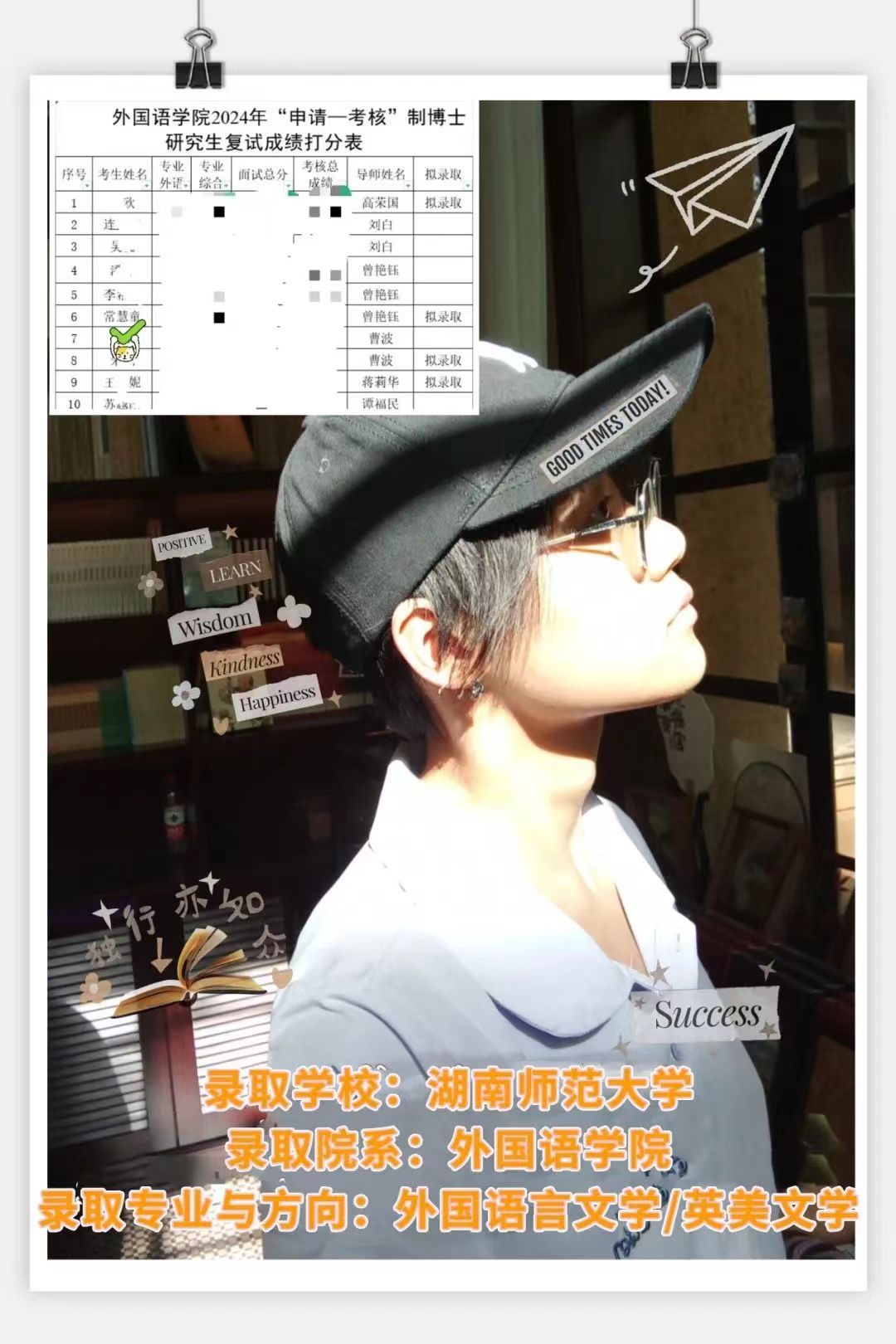 21级英语语言文学专业常慧童考入湖南师范大学外国语学院攻读外国语言文学专业英美文学方向博士研究生;iqqtv