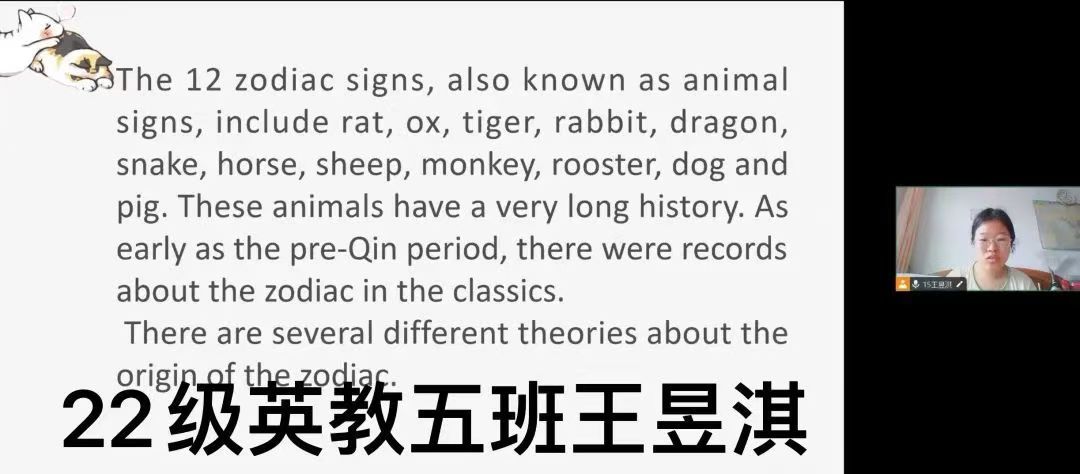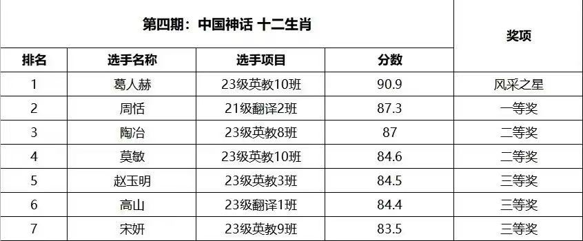 团委举办——“五州别畛通言语,山川异域同风雅”第二届“用英语讲中国故事”活动。今天,让我们跟随第四期,一起了解中国神话和十二生肖。各位讲述者通过分享中国神话和十二生肖的故事,让那些古老而神秘的传说在岁月的长河中熠熠生辉。他们用生动的语言描绘出每一个生肖的独特形象和象征意义,使观众仿佛置身于奇幻的神话世界之中。