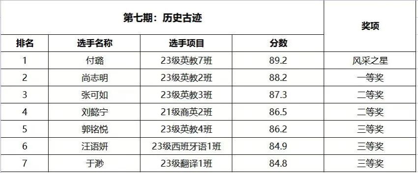 以下是第七期获奖同学名单