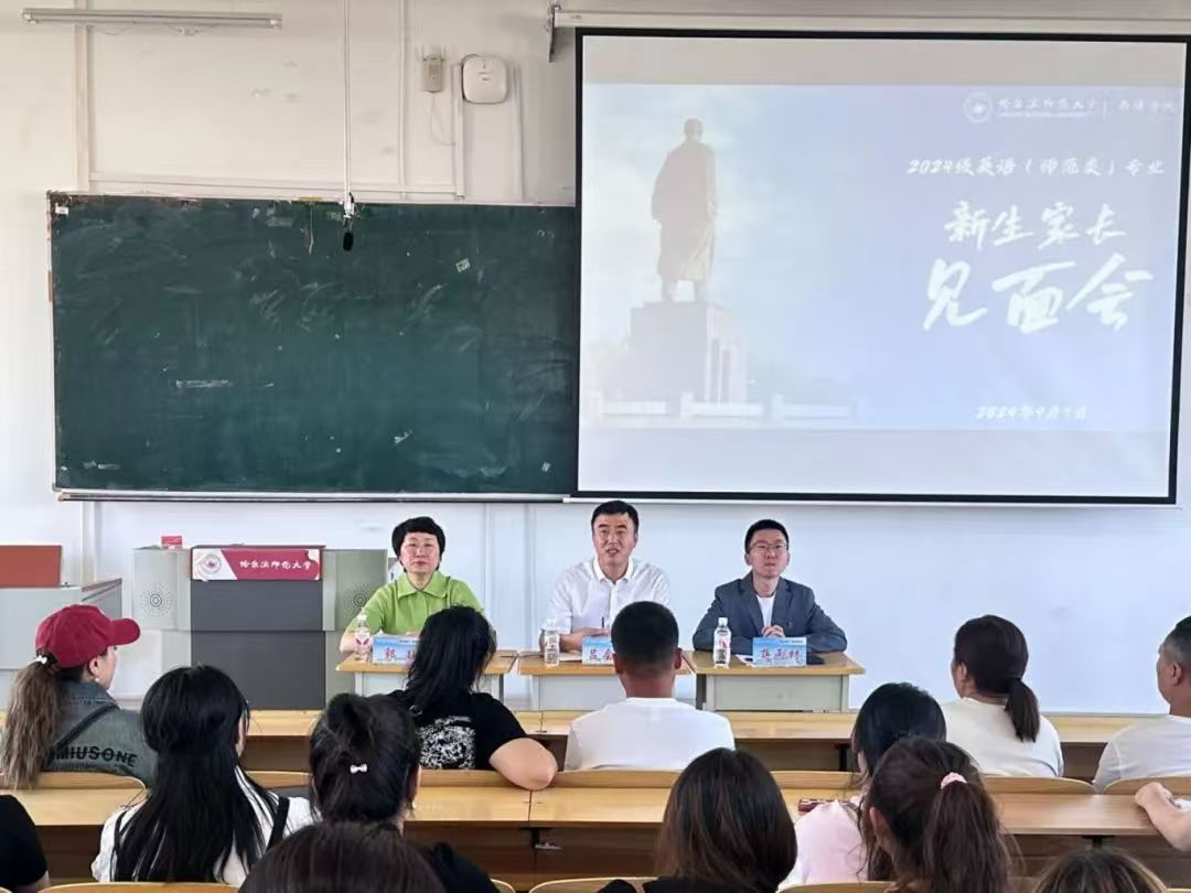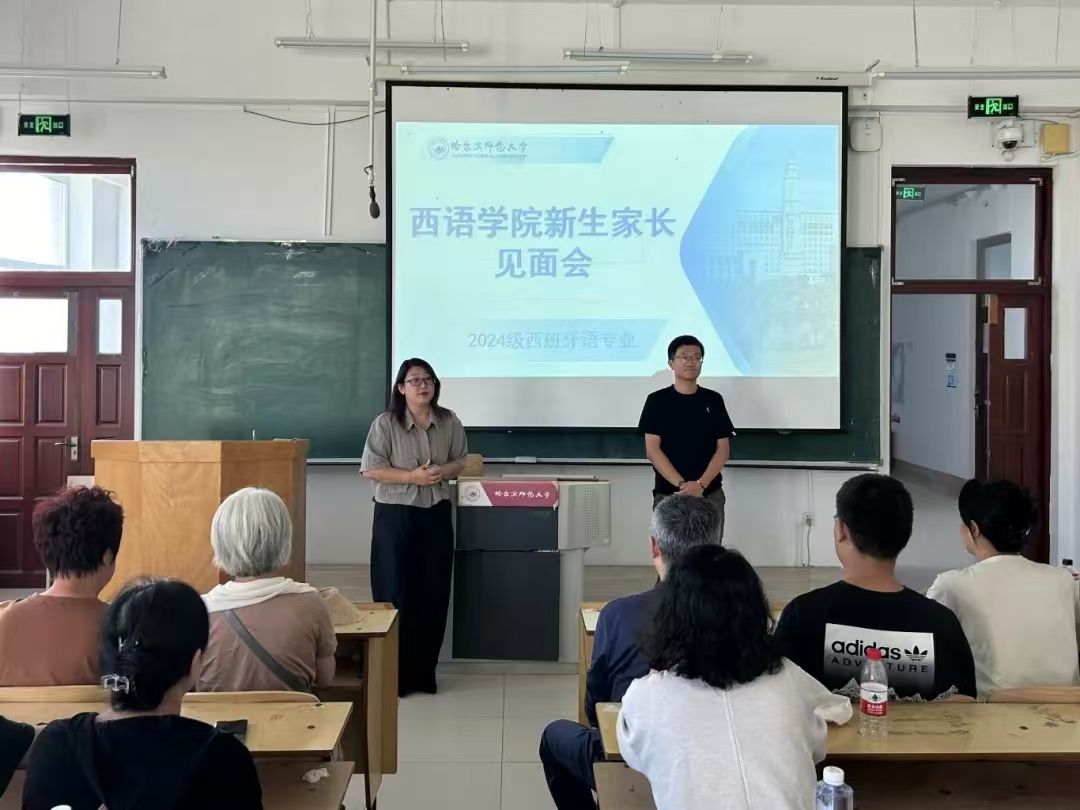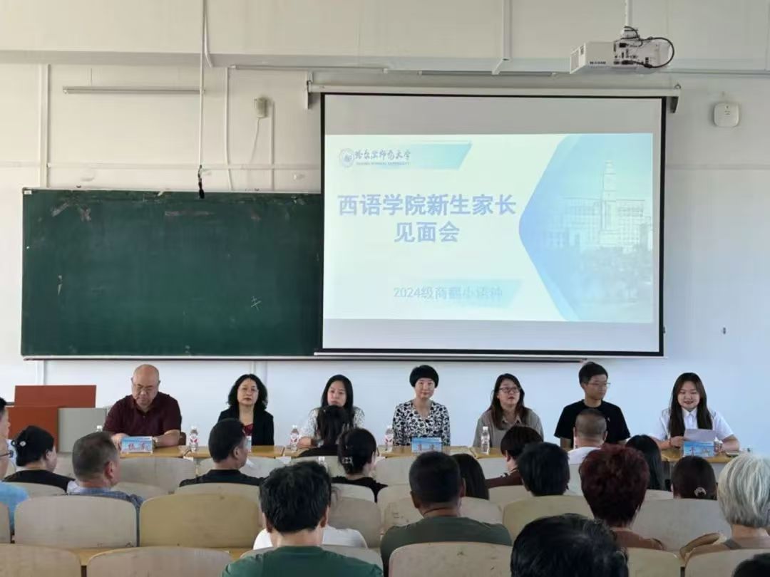 党委书记王羽、党委副书记吕会庆、英语教育系主任郭颖、应用英语系主任李雅波、法语系主任肖凌、应用英语系副主任杨东、西葡语系副主任史玮、西班牙语专业教师张宏宇出席本次见面会,会议分别由2024级新生辅导员蒋雨材和于涵主持。
