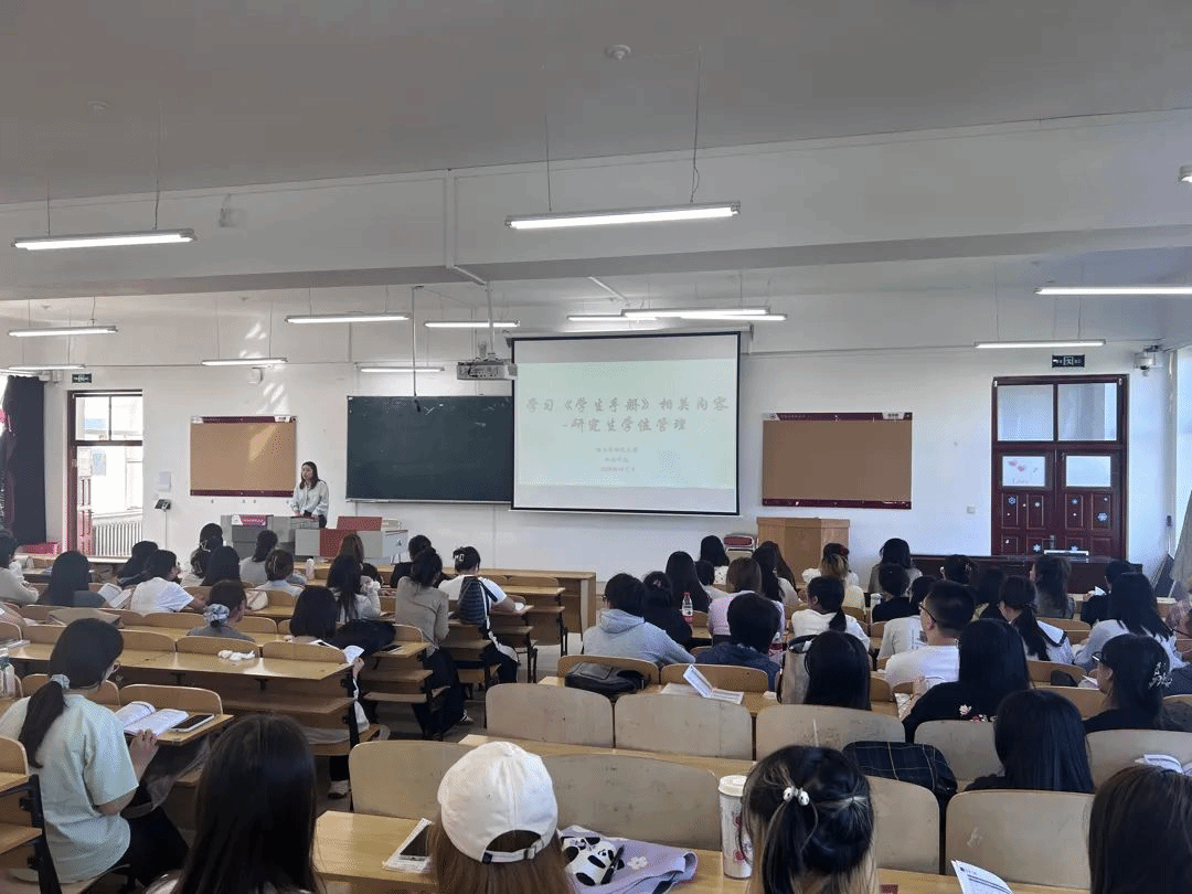 首先,王一楠老师对研究生学位管理、培养方式、课程设置、学习要求等方面进行了详细介绍。并强调,同学们要对研究生生活有更深刻的认识,建立适应自己的学习和生活节奏,以良好的状态开启研究生生涯。