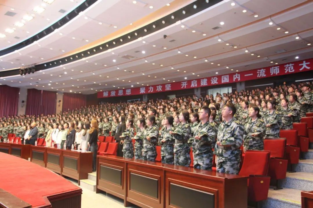 在庄严的国歌声响起之际,开学典礼正式开始。