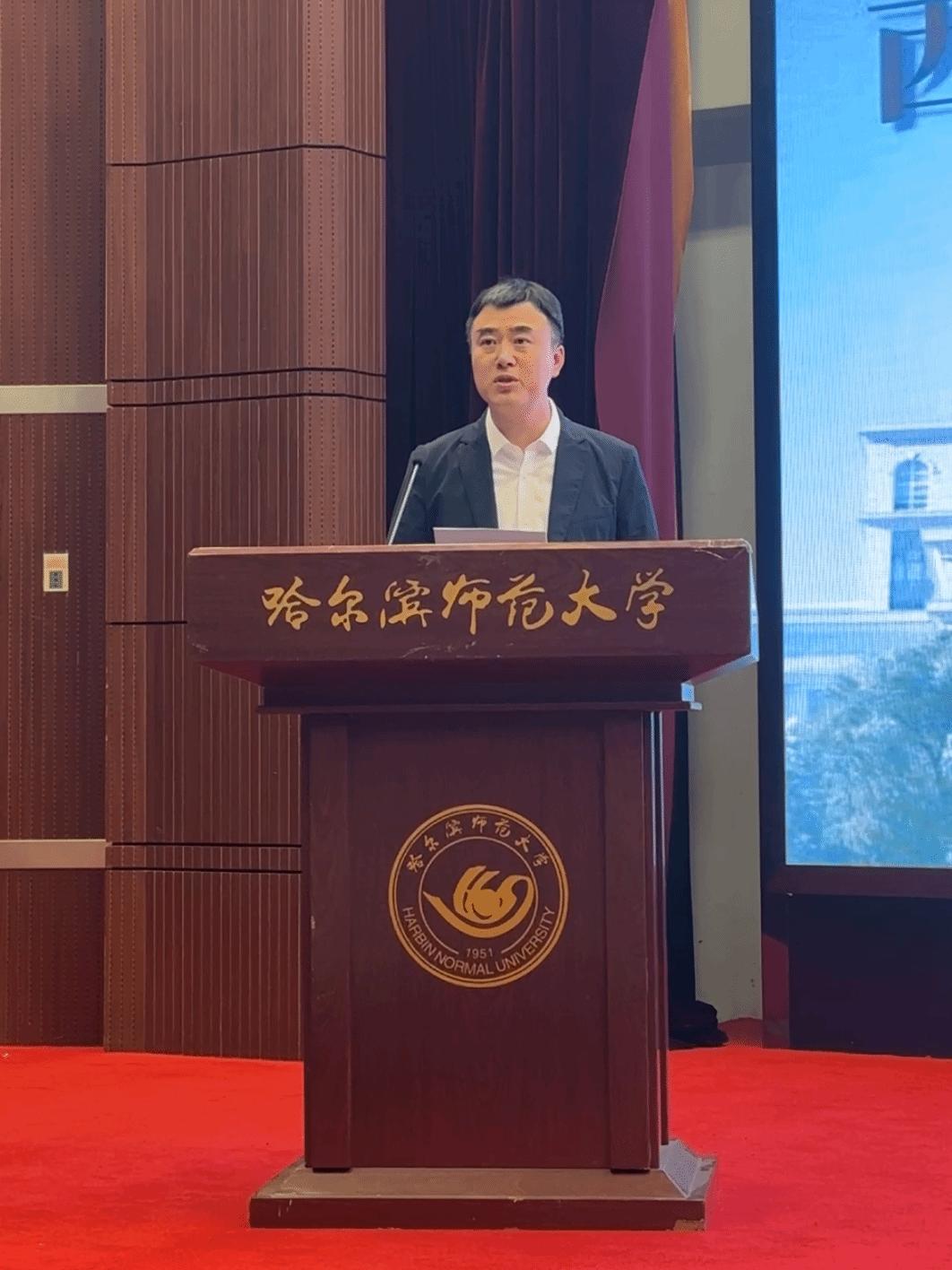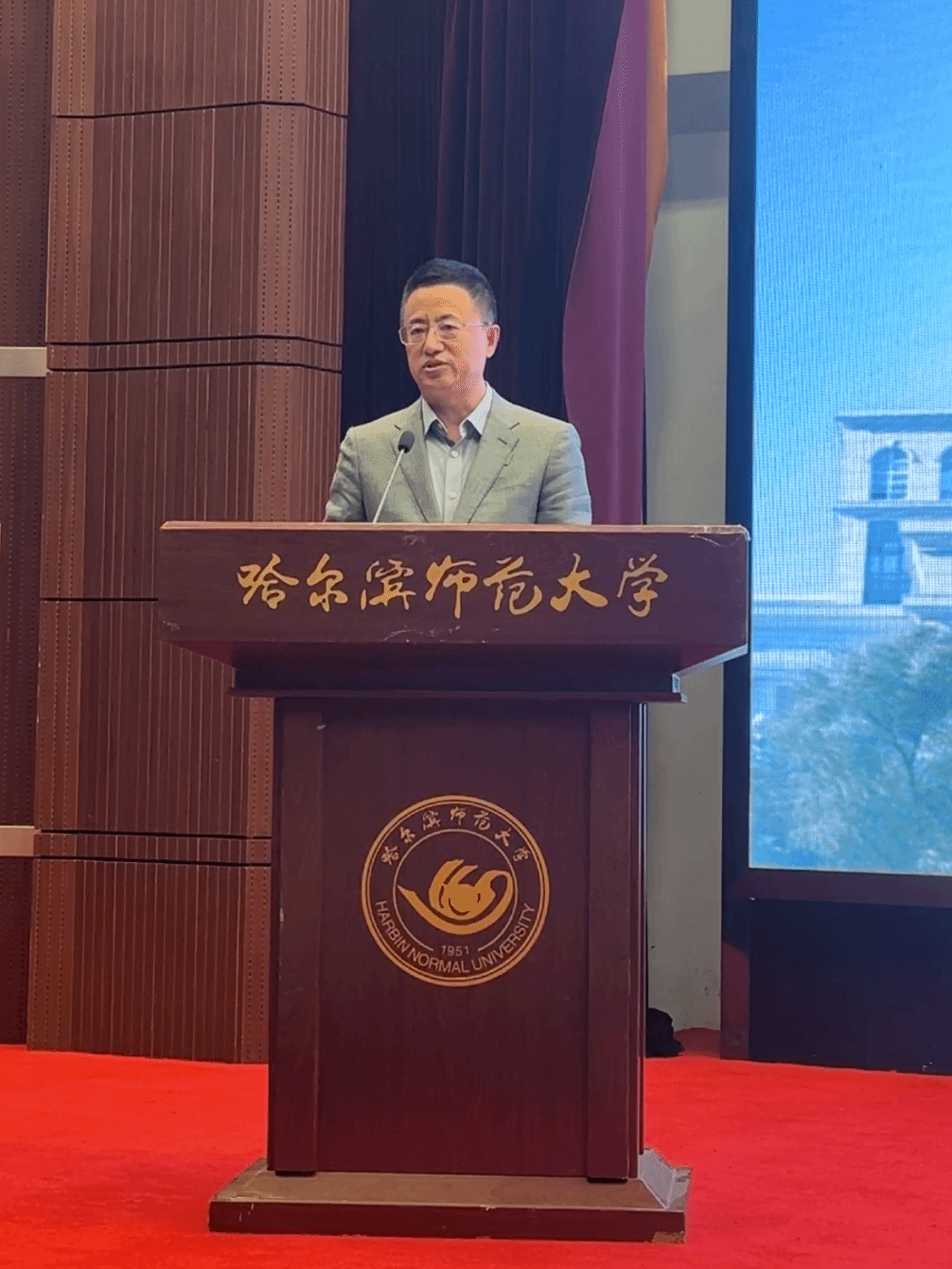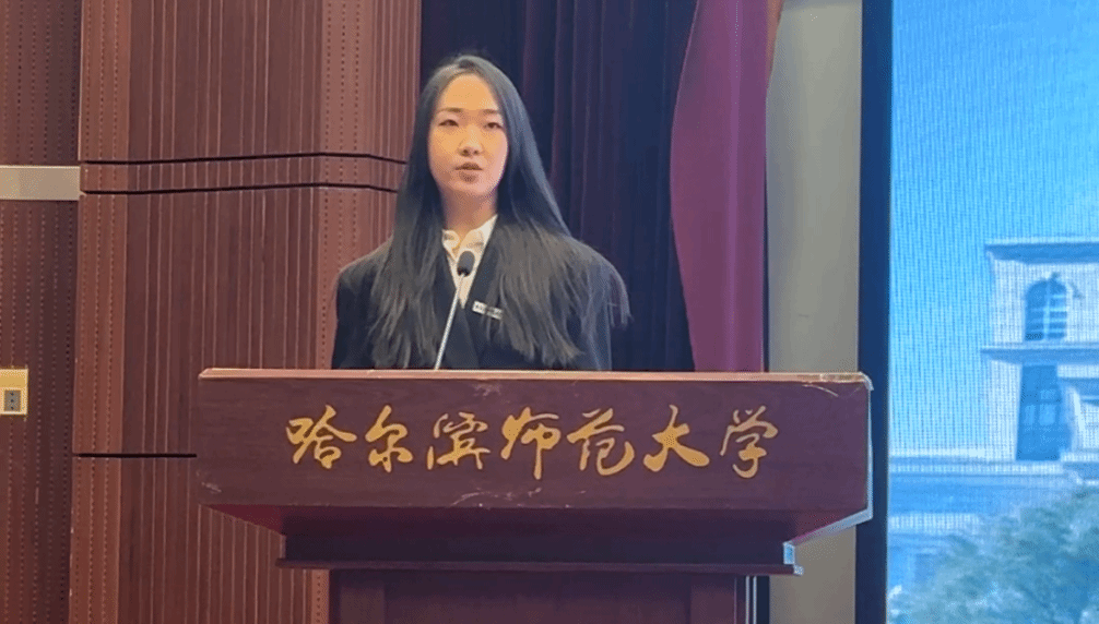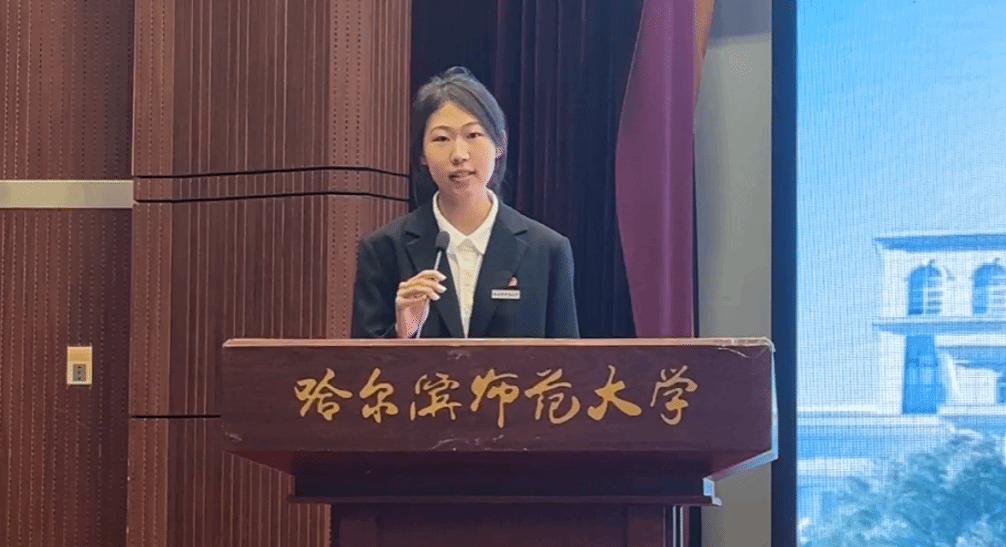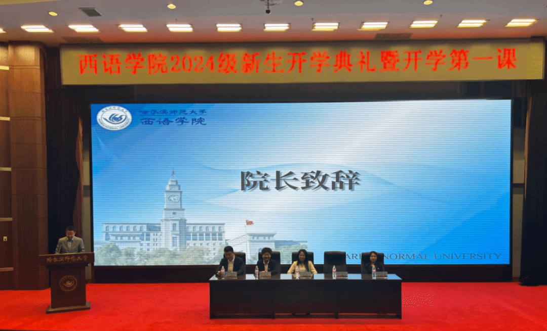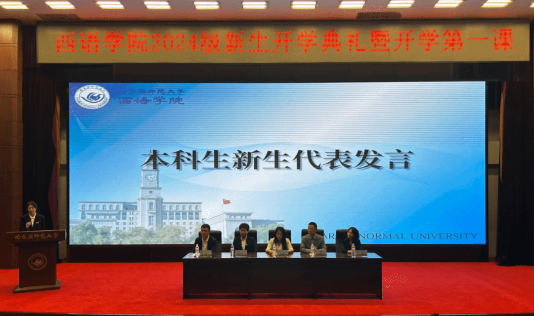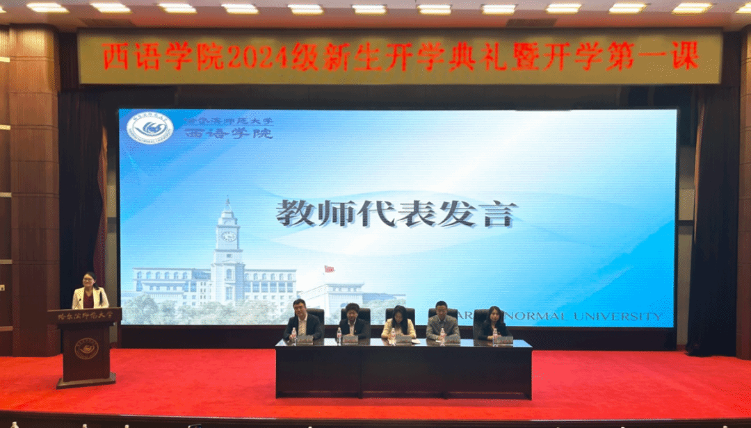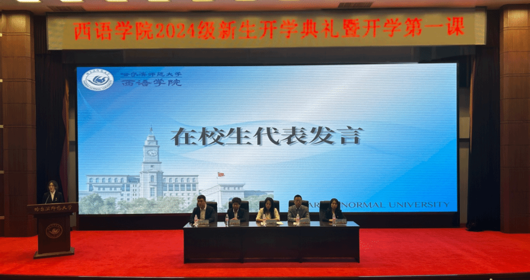 研究生新生代表陈莹同学在发言中提出与新同学共勉的三点建议:一是迎接挑战,敢为人先;二是志存高远,激发潜力;三是贡献青春,成就梦想。作为哈师大西语人,应胸怀大志,与时代共进步,与人民共命运,为中华民族伟大复兴事业挥洒青春热血,成就“青春激昂,为国增辉”的人生目标。