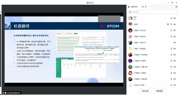 李智老师主持的“翻译项目管理流程”主题讲座在腾讯会议顺利召开。她讲述了如何构建团队并进行翻译项目管理,重点向同学们介绍项目的基本定义、项目的五大过程组和十大知识领域,以及在实际项目中,翻译项目管理具体工作是如何开展的。她还结合以往工作实践经历、企业实践向同学们提出了一些宝贵意见,指明了实践方向,使同学们受益匪浅。随后,李老师就实习社会实践活动安排与具体事项做出指导,并鼓励同学们开阔思维、大胆创新、培养自身的管理能力。