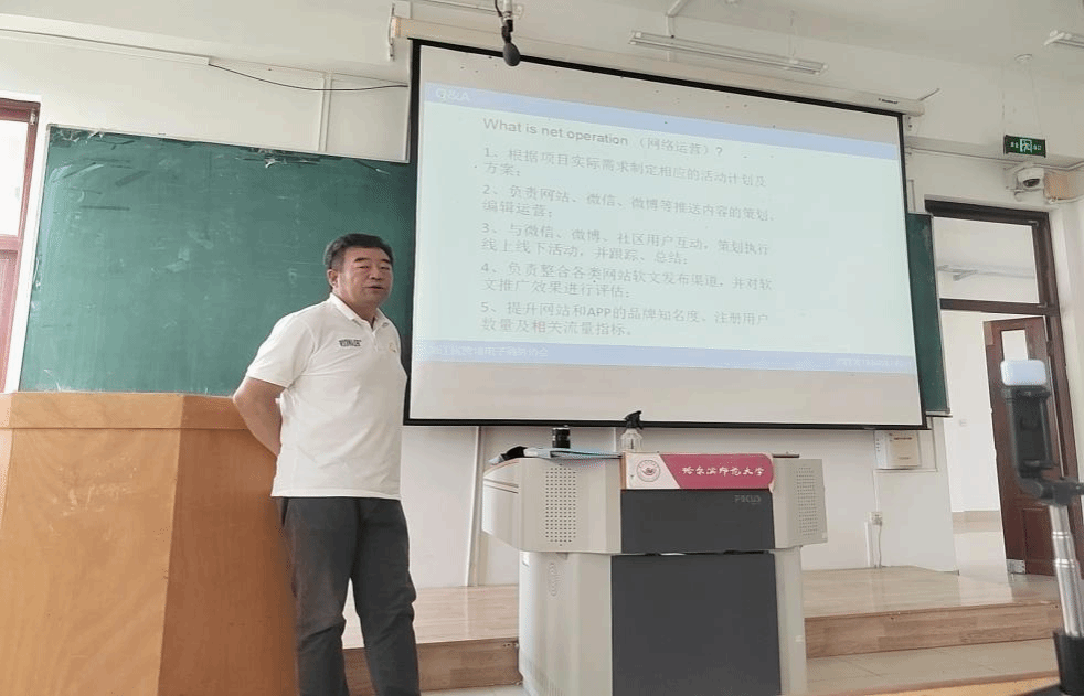 2024年9月4日9:00,商务英语专业讲座在西语楼403教室举行,会议由应用英语系教师王晓慧主持,讲座特邀黑龙江跨境电子商务协会会长、黑龙江省赛福尔经贸有限公司董事长闫国富为即将参加实习的同学们讲授“商务英语之功效——职业生涯篇”第二场系列讲座。