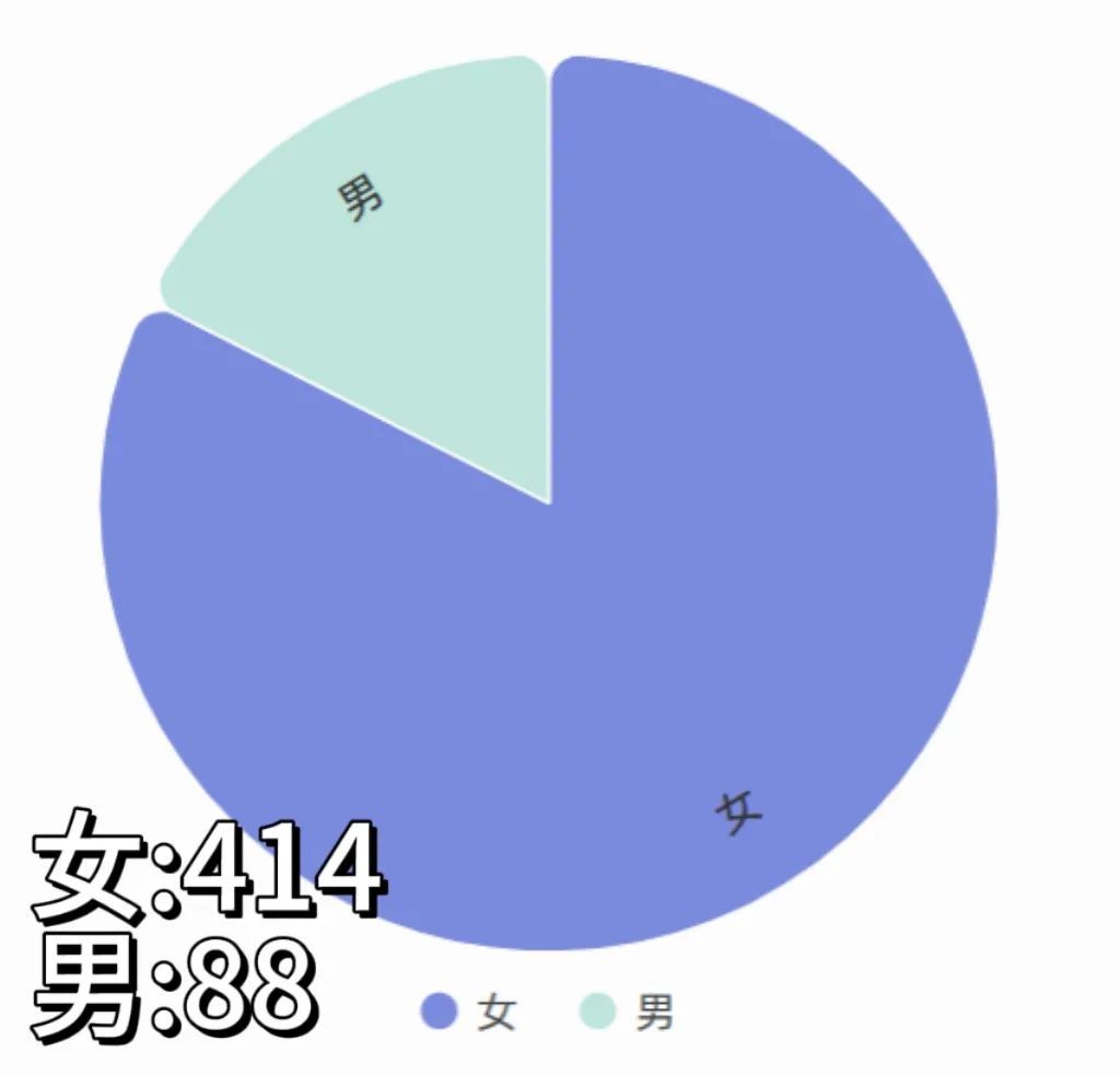 今年,我们迎来了502名新生。男女比例接近1:5,其中男生88人,女生414人。