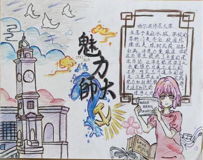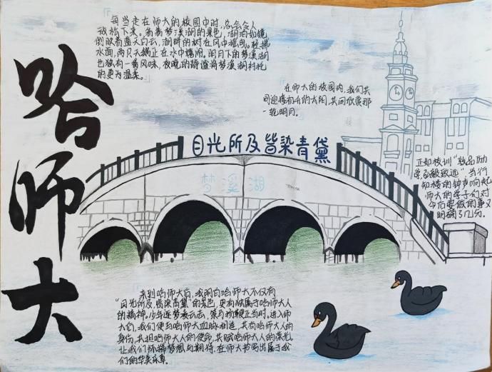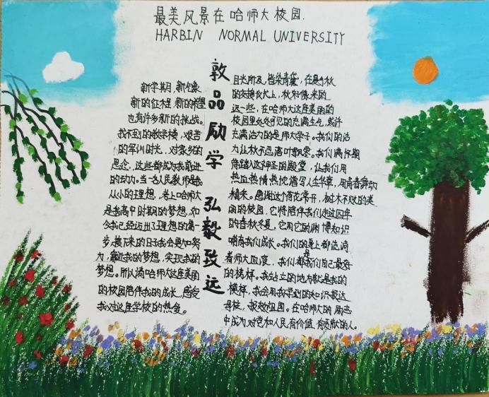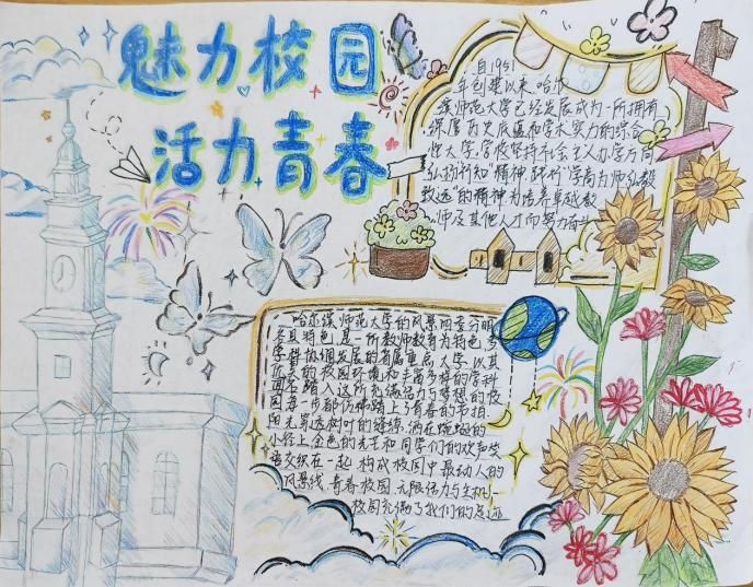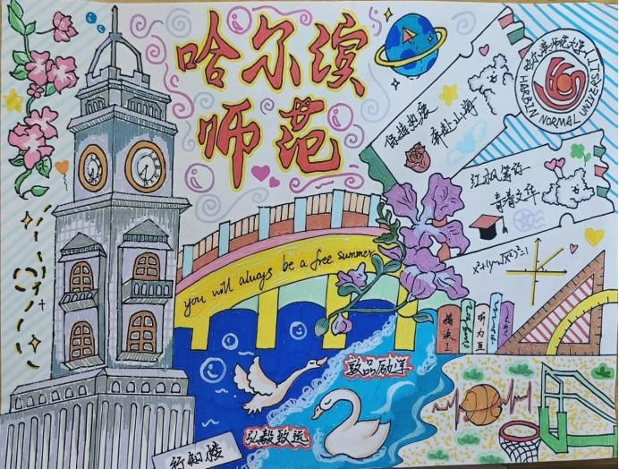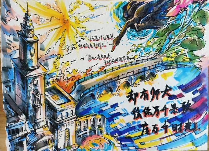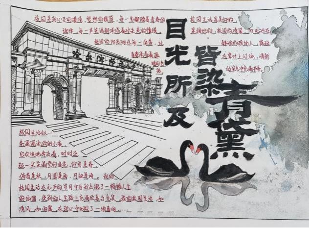 定格光影,留住美好瞬间。寻一处宝地,细细感受静谧的美好;赏一方美景,在繁忙中修得浮生半日闲。愿你用心去感受每一瞬,在心中拼凑出一幅回忆拼图,留下欣喜与美好。画手抄报的过程像是一次心灵的旅行,画面错落有致,一笔一划皆是思绪的流淌。以上获奖作品既展现出对大学生活的向往与期待,又体现出了对校园生活的热爱,同时运用了较高水平的绘画技巧,完美展现出同学们思绪的创意性和绘画的美观性,把观者带入到了他们的绘画作品中。